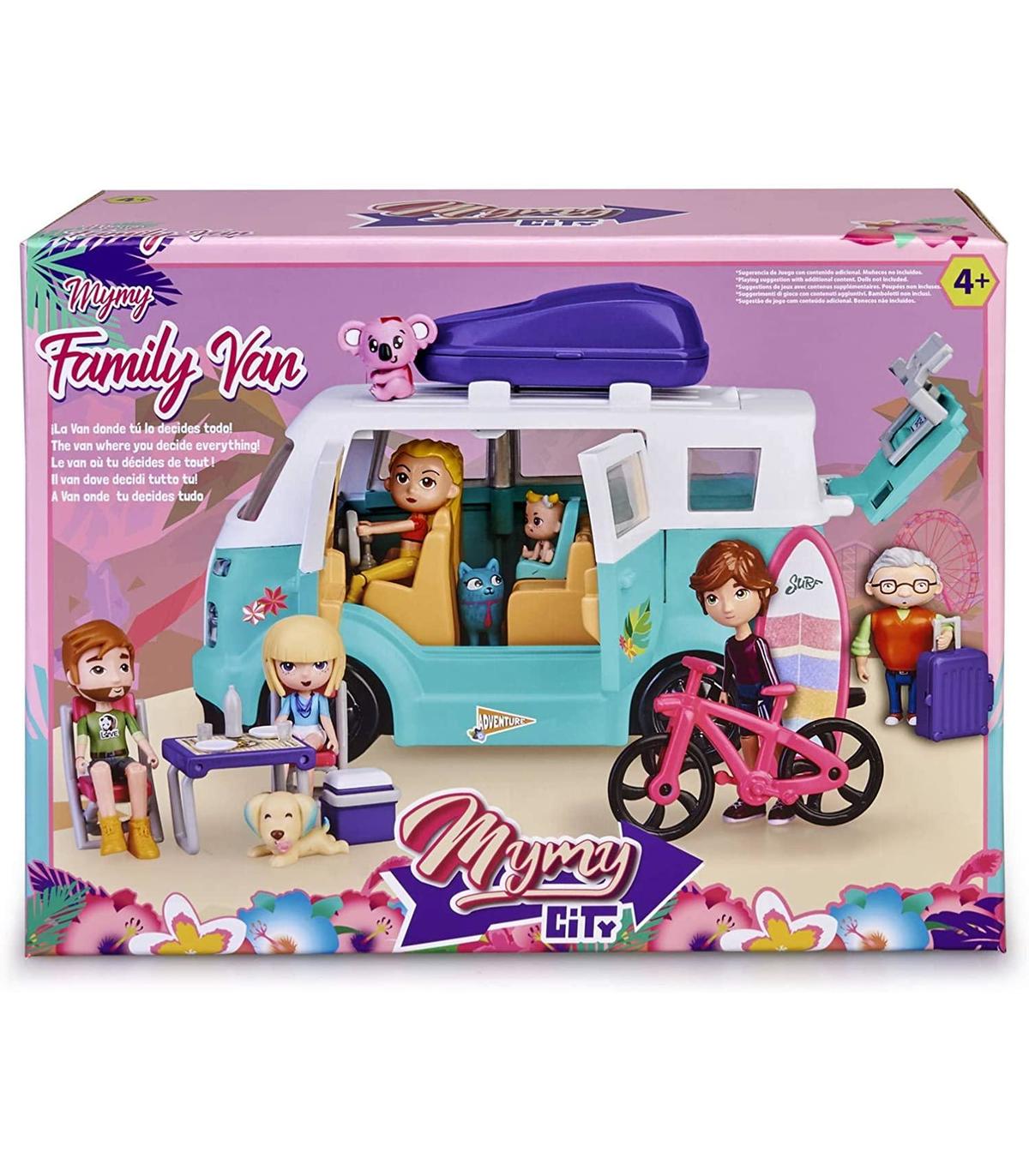 en el techo de la caravana para poder guardarlo todo y hasta un soporte para llevarte la bici. Compatible para todas las figuras de la colección Mymy City.