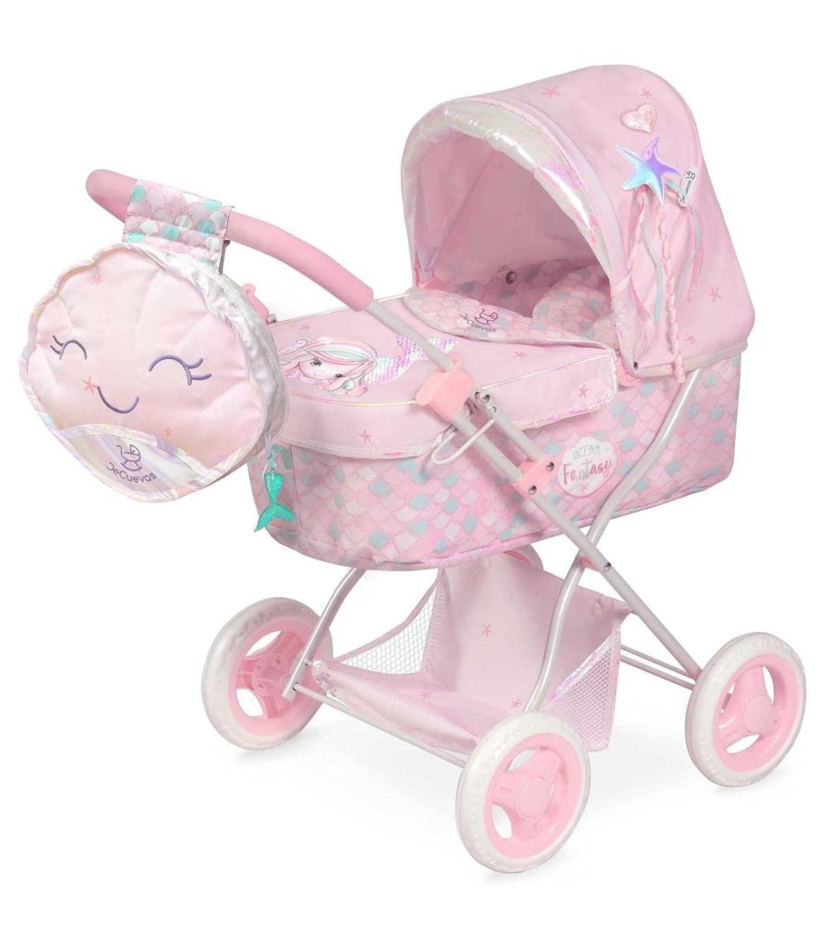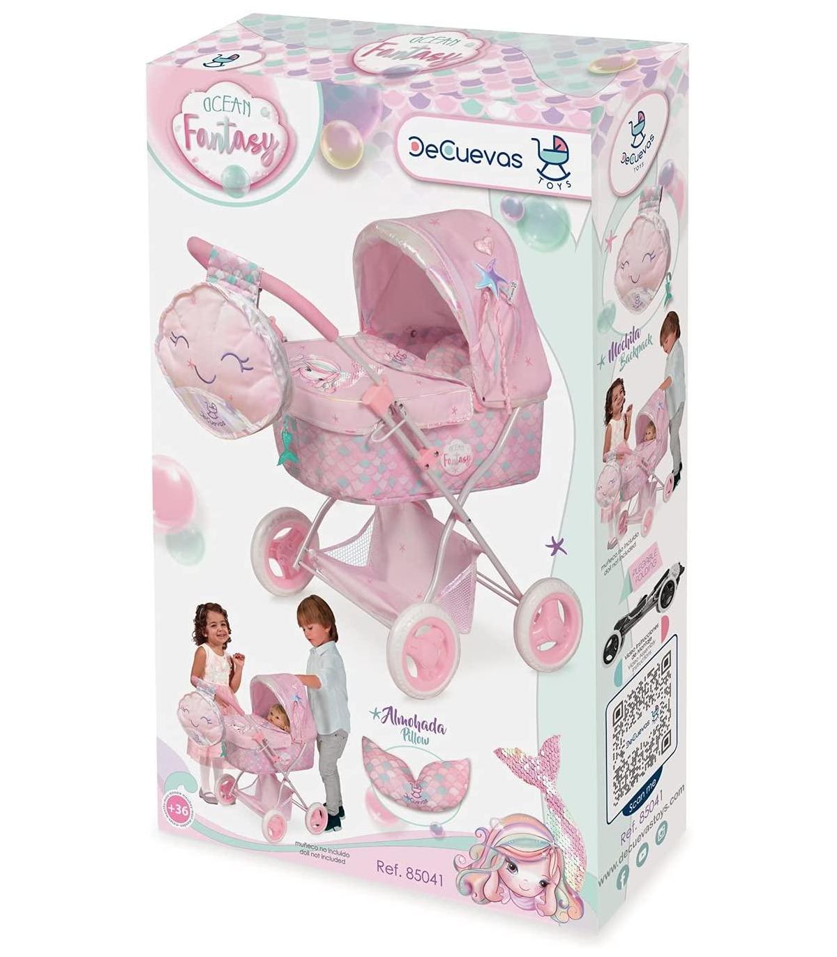El pack incluye: Carro de Muñecas plegable de la línea Ocean Fantasy y bolso, a juego. Una bandeja inferior portaobjetos, con almohada y capota.