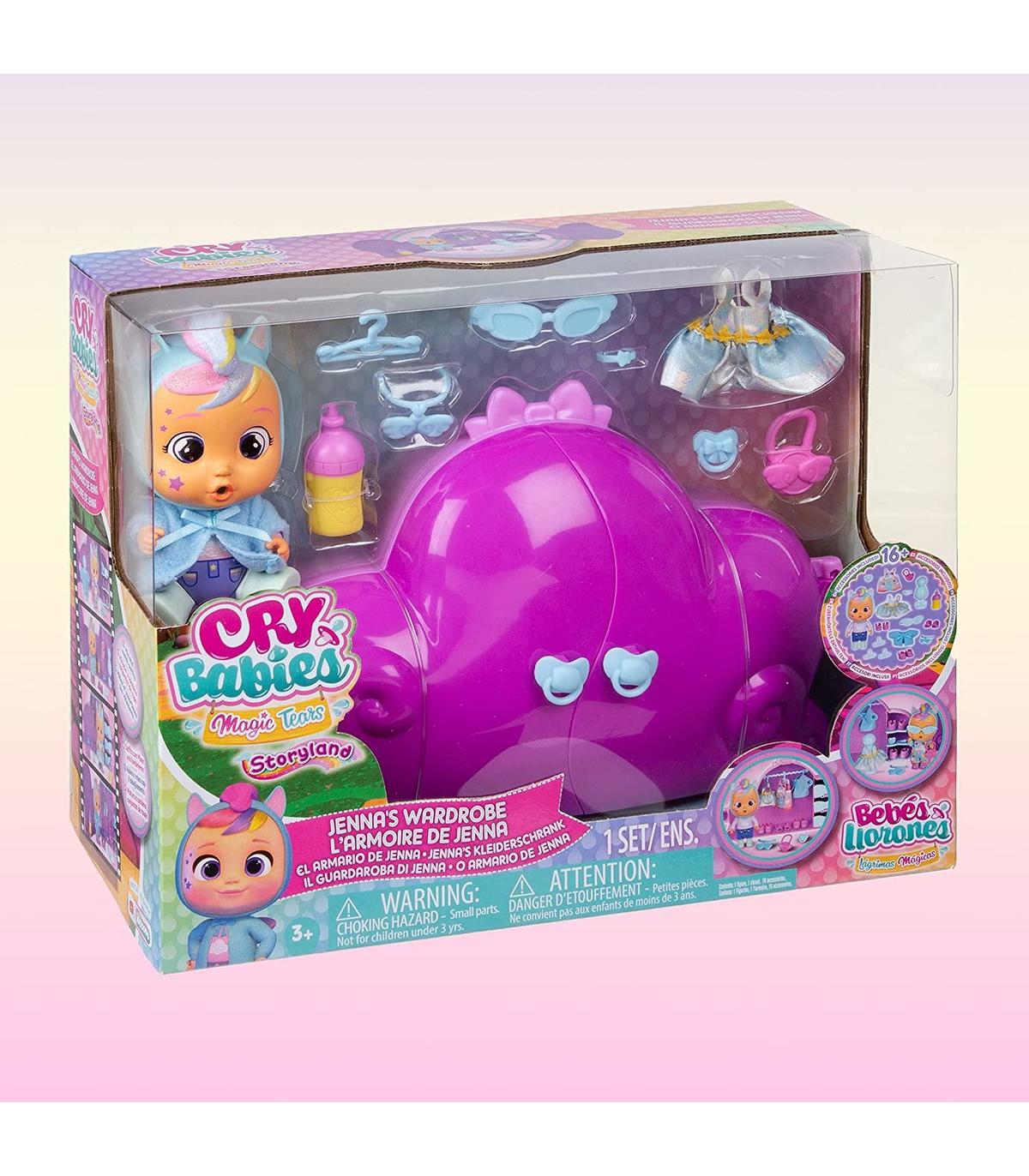 Bebés Llorones Storyland El Armario de Jenna ¡El nuevo playset Dress Me Up es el súper coleccionista de conjuntos de los Bebés Llorones Lágrimas Mágicas y es el armario de Jenna! En este gran armario podras guardar todos los accesorios y la ropa de los Bebés Llorones Lágrimas Mágicas, con perchas y espacios para los zapatos y los accesorios. Jenna viene con 3 conjuntos especiales para lucir increíble, lo que hace un total de más de 15 accesorios diferentes para jugar: biberón, chupete, maniquí, 3 perchas, 3 piezas de ropa reales, 3 pares de zapatos y 4 accesorios diferentes ¡Te encantará guardar los conjuntos de otros personajes de las cápsulas Dress Me Up e intercambiar la ropa entre todos ellos! Edad recomendada: + 3 años. No recomendable para menores de 3 años, ya que contiene piezas pequeñas que podrían provocar asfixia en caso de ser ingeridas por el niño/a.