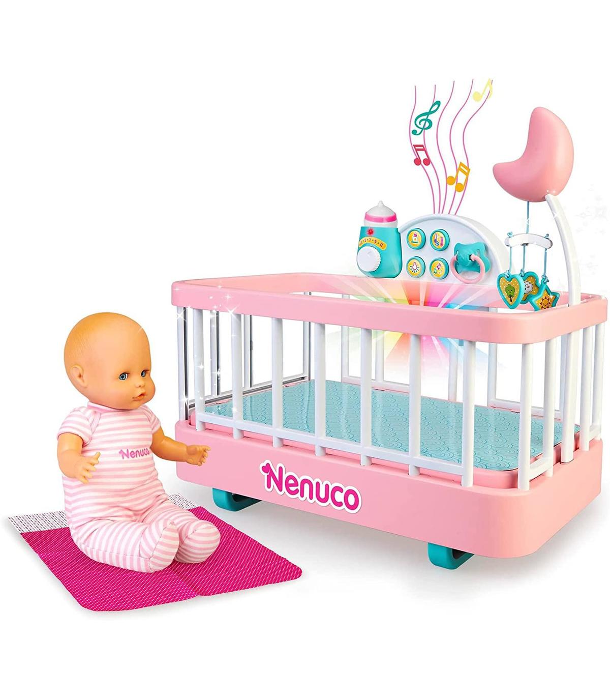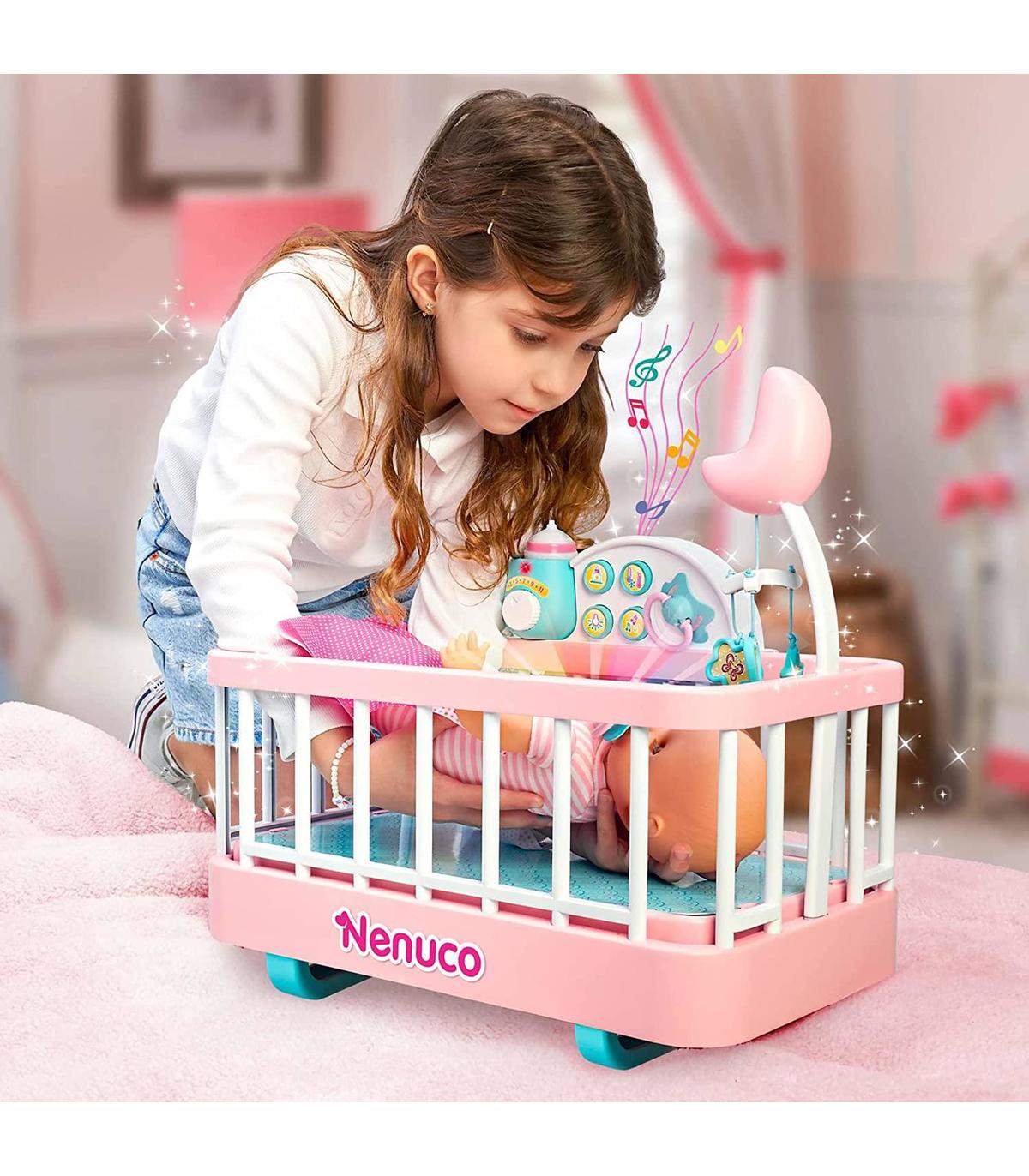 Este set de juego contiene una cuna interactiva y un muñeco Nenuco de 35 centímetros con cuerpo blandito