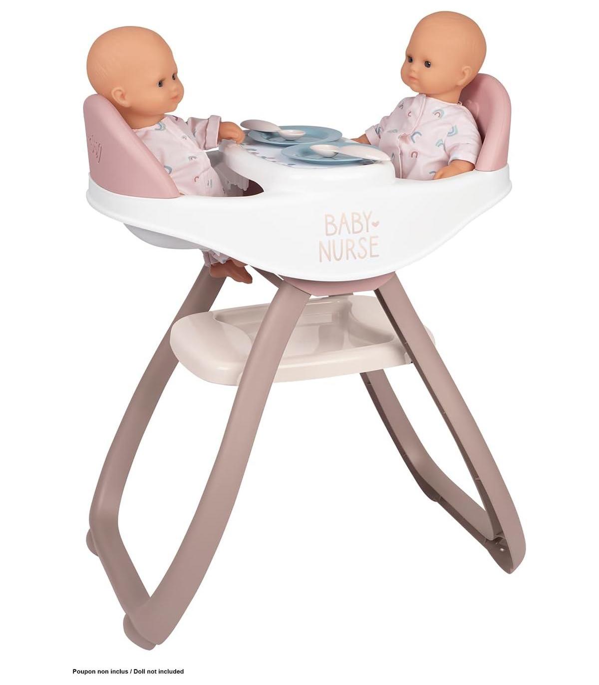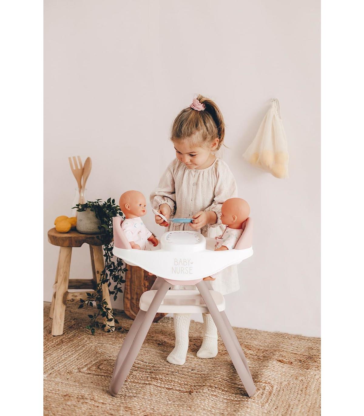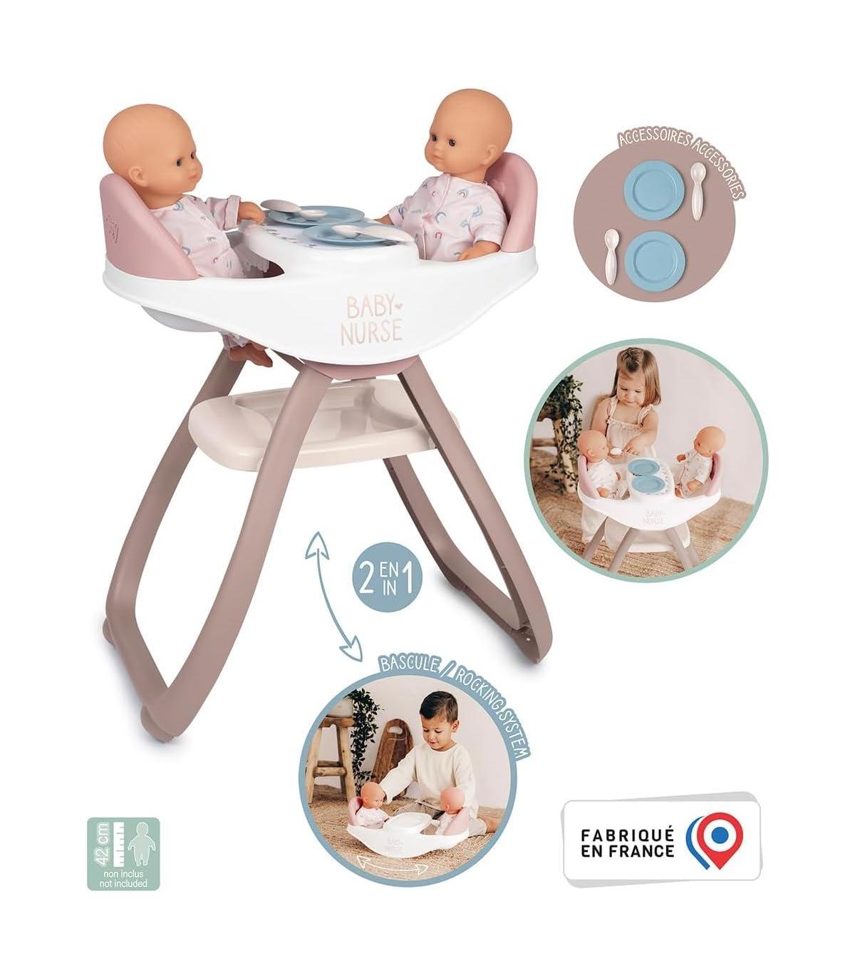 Bn Trona Gemelar Trona gemelar con la que el niño puede alimentar a 2 muñecos al mismo tiempo 2en1: asiento para la trona y balancín Incluye: 2 cucharas y 2 platos. Muñecos no incluidos Adecuado a partir de 2 años