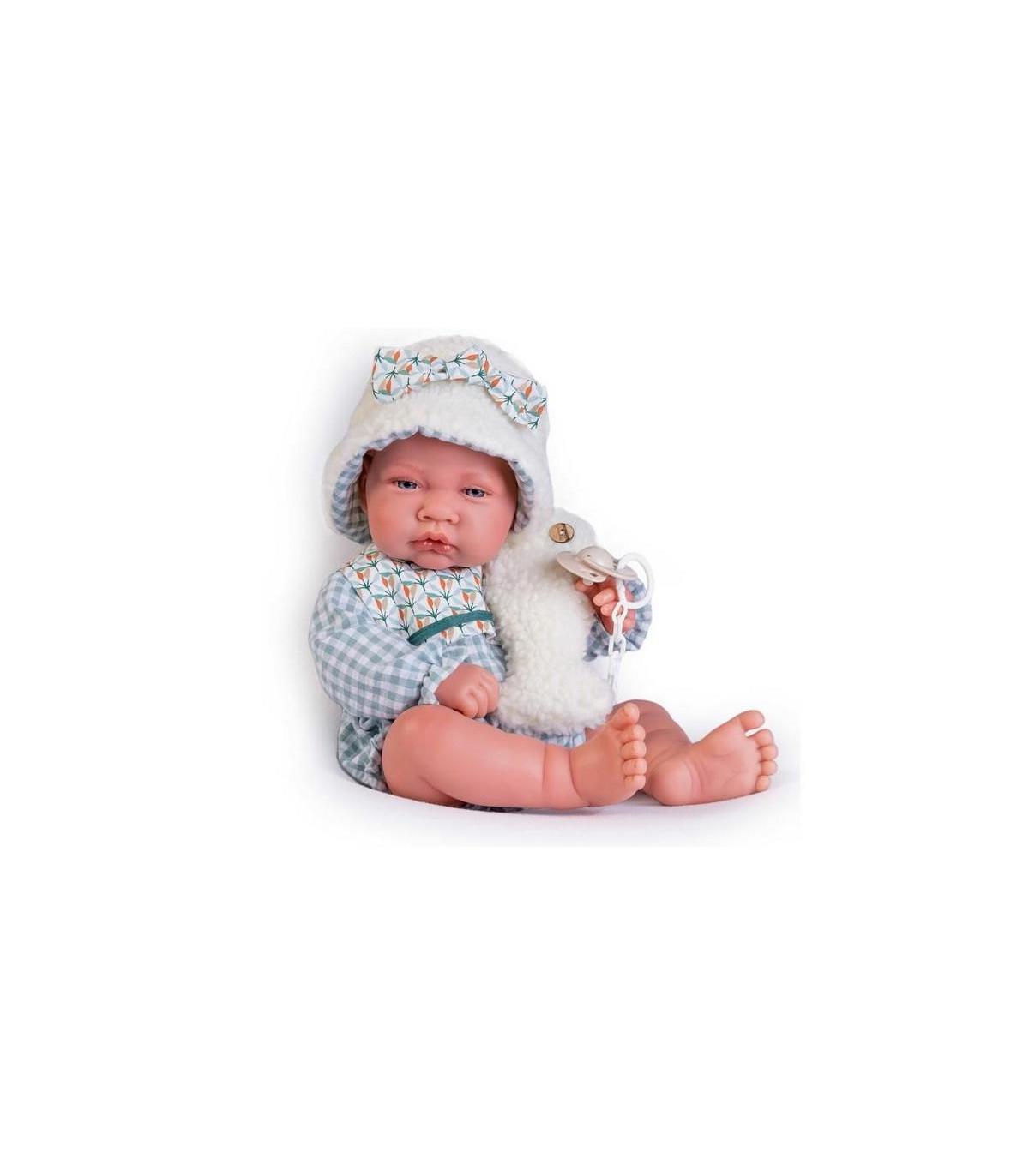 La muñeca va con un vestido blanco estilo de lino con un lazo de tono...