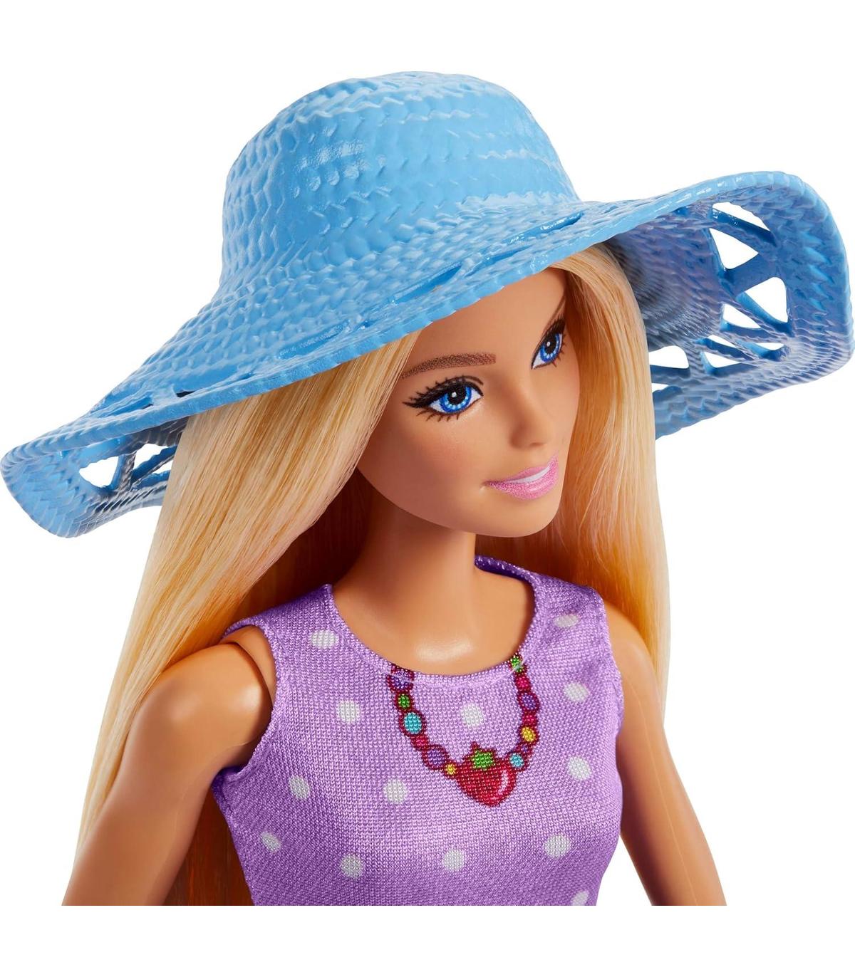 El tejido del vestido con estampado de flores de Barbie está elaborado a partir de plástico reciclado e incluye volantes con divertidos detalles