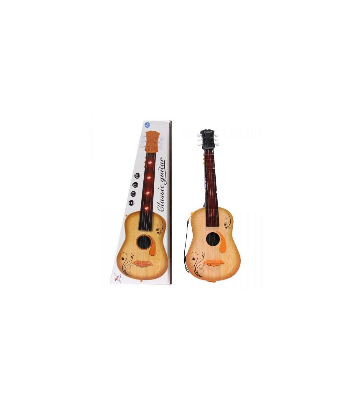 Guitarra Deluxe Material de madera Dimensión: 75 cm Desarrolla habilidades creativas Guitarra española de madera tratada. Medida 75 cm. de longitud. Con 6 cuerdas metálicas. Afinable como instrumento real.