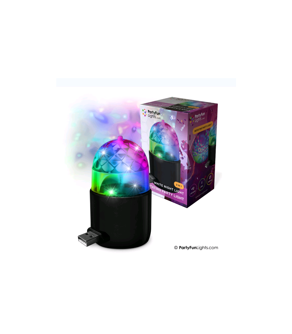 Con la Lámpara de Fiesta puedes crear un ambiente fresco y relajante en cualquier habitación. También cuenta con una función de luz nocturna blanca. Los 4 LED de colores y la bola de discoteca giratoria crean un efecto fantástico que sin duda te pondrá a ti y a tus amigos de buen humor para la fiesta. Con interruptor de encendido/apagado.