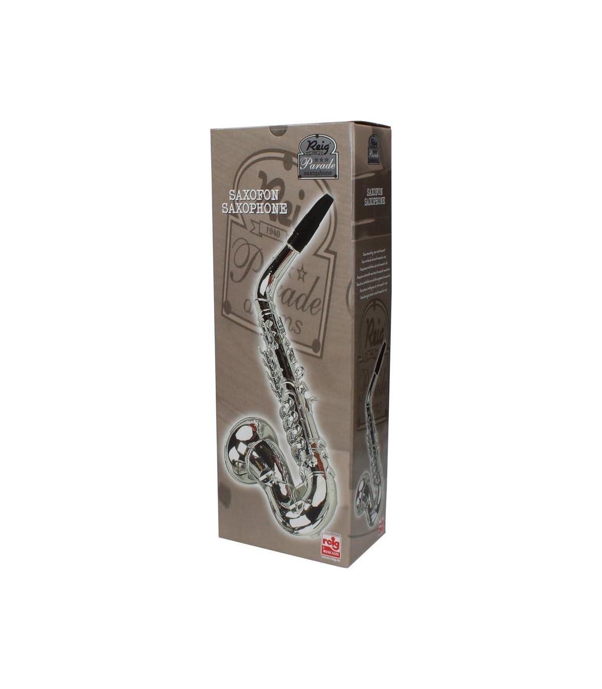 Saxofon Metalizado 41 cms en Caja. Material de plástico metalizado 8 notas Desarrolla habilidades creativas