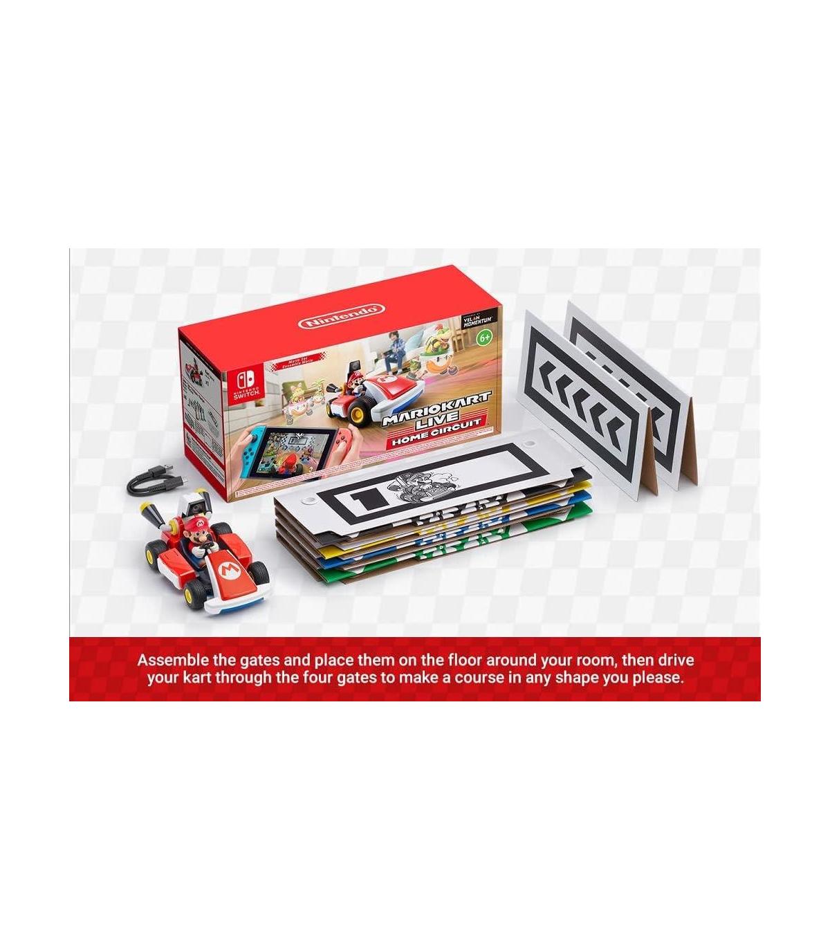 ¡Tu casa se convierte en un circuito! Celebra el 35º Aniversario de Super Mario Bros con Mario Kart Live Home Circuit: ¡Transforma tu casa en un circuito de carreras con Mario Kart Live: Home Circuit, una nueva manera de disfrutar de Mario Kart en Nintendo Switch! Conduce un kart en el mundo real usando los controles de Mario Kart y vive la acción en primera persona gracias a la cámara integrada que transmite las imágenes directamente a tu Nintendo Switch o al televisor. Verás tu casa transformarse en las profundidades del océano, en un desierto con dunas... ¡y muchos más escenarios del mundo de Mario Kart! Paso 1: Preparativos Monta los arcos y colócalos en el suelo. Paso 2: Traza el circuito Conduce el kart y atraviesa los cuatro arcos para crear un circuito con el trazado que más te guste. Paso 3: ¡A jugar!: ¡Compite contra los esbirros de Bowser en ocho copas distintas! Descubre tu casa desde una nueva perspectiva gracias a las carreras de Mario Kart que cobran vida en tu pantalla. Mientras corres en el circuito que has creado, otros pilotos intentarán llegar a la línea de meta antes. ¡Emplea los objetos que puedes recoger en el circuito para impedírselo! Lo que ocurra en el juego afectará a la forma en la que se mueve el kart en la realidad. Por ejemplo, si usas un champiñón, tu kart acelerará, pero, si un rival te acierta con un caparazón rojo, se detendrá. Tu familia y amigos pueden unirse a la diversión y pasarlo en grande con carreras multijugador para hasta cuatro jugadores, siempre y cuando cada jugador tenga su propio kart, una consola Nintendo Switch y una copia del juego Cada set contiene: Kart × 1 Arcos × 4 Señales de curva × 2 Cable USB de carga Nota: Para usar este producto, se requiere una consola Nintendo Switch o Nintendo Switch Lite (se venden por separado) y el programa Mario Kart Live: Home Circuit. Dicho programa se podrá descargar de manera gratuita en Nintendo eShop a partir del 16 de octubre de 2020.
