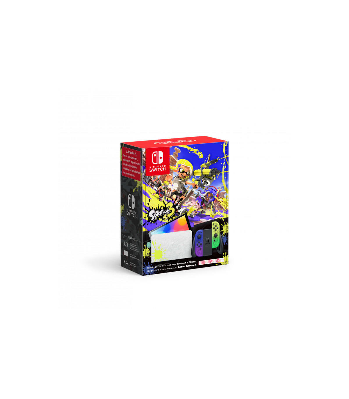 Consola NINTENDO SWITCH OLED Edición Splatoon 3 Consola Nintendo Switch OLED: Nueva versión, colores intensos, pantalla de 7 pulgadas, con Joy-Con y diseño exclusivos Splatoon 3 El modelo OLED tiene unas dimensiones cercanas a las del Nintendo Switch pero tiene una pantalla OLED más grande con colores intensos y altos contrastes. Soporte ajustable, una nueva estación de acoplamiento con puerto Ethernet, 64 GB de memoria interna y altavoces integrados para modos en movimiento.