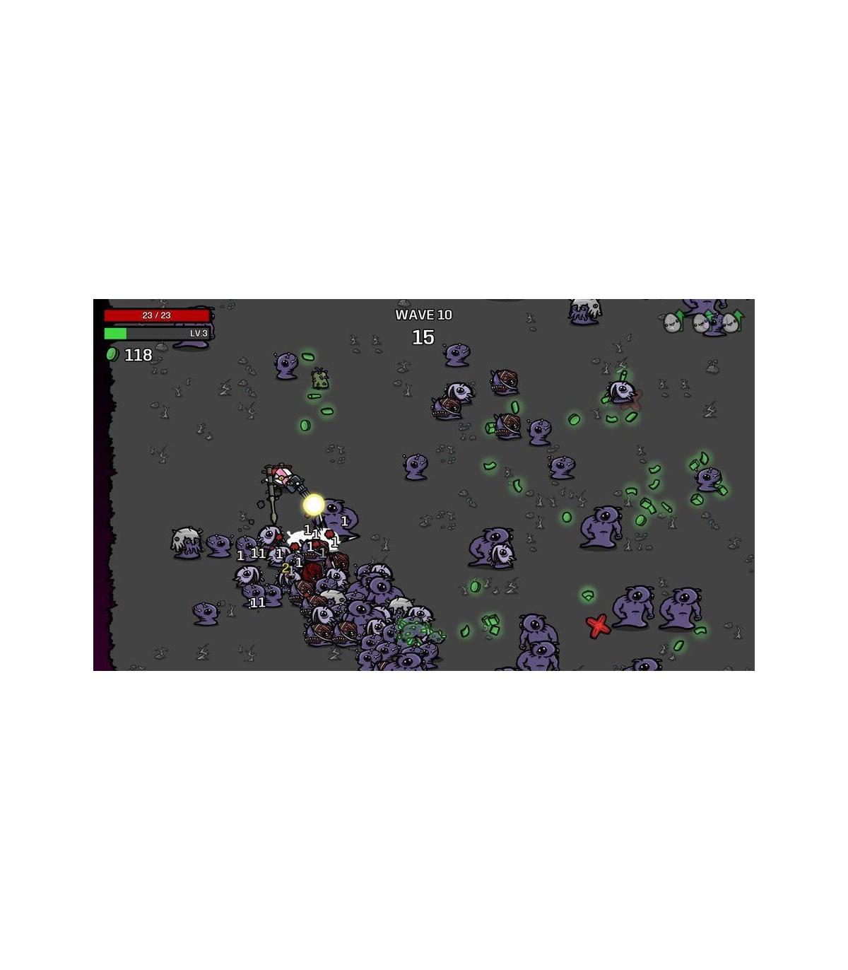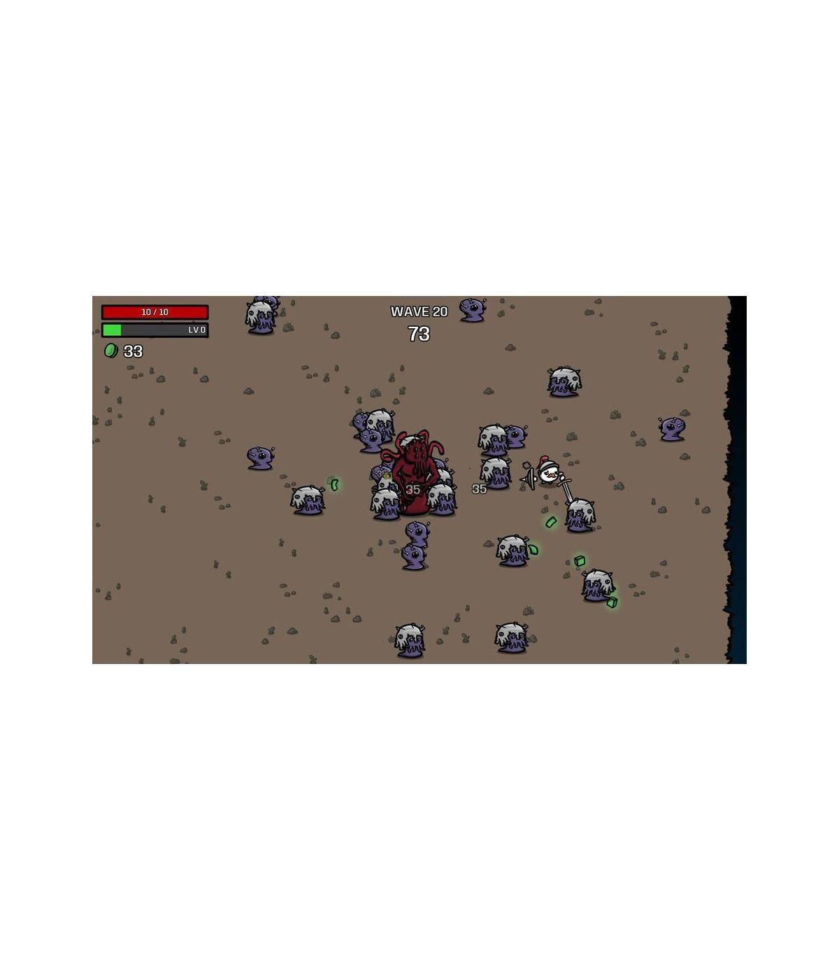 Brotato es un roguelite de disparos en el que te moverás de arriba abajo del escenario. Encarna a una patata con 6 armas simultáneas para hacer frente a los alienígenas. Elige entre una variedad de características y objetos para crear combinaciones únicas y sobrevivir hasta que acudan los refuerzos. Una nave procedente de Tubércula se estrella en un planeta alienígena. Solo Brotato, la única patata capaz de manejar 6 armas al mismo tiempo, sobrevive a dicho accidente. A la espera de que sus compañeros lo auxilien, habrá de resistir en un entorno atroz.. • Autodisparo por defecto, aunque existe la opción de apuntar manualmente. • Partidas rápidas (de menos de 30 minutos) • Varios personajes disponibles con los que personalizar tus partidas (con una mano, enloquecido, afortunado, mago y muchos más) • Cientos de objetos y armas a tu elección (lanzallamas, subfusiles y lanzacohetes o incluso palos y piedras) • Sobrevive a oleadas que duran de 20 a 90 segundos y elimina a cuantos más alienígenas puedas en dicho tiempo. • Reúne materiales para ganar experiencia y conseguir objetos en la tienda entre oleada y oleada. • Opciones de accesibilidad: Configura la salud, el daño y la velocidad de los enemigos para dar con la dificultad que mejor te venga.