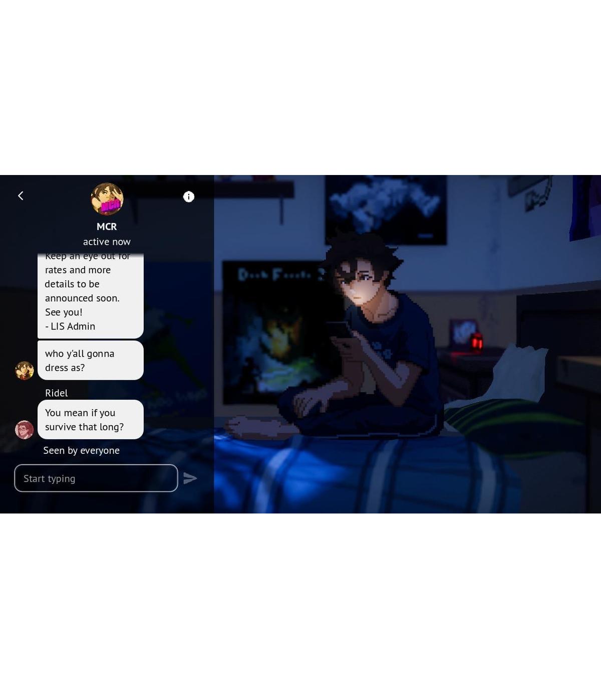 Conoce a un variado y fastidiosamente familiar elenco de personajes con los que podrás hablar en persona, por chat o por correo electrónico. La forma en que elijas interactuar (o no interactuar) puede influir en las relaciones, afectar a los resultados del proyecto, generar situaciones inesperadas o incluso determinar el final del juego. Explora las profundidades de las redes sociales, donde tus "me gusta" y comentarios pueden tener consecuencias. Desplázate por publicaciones sociales, correos electrónicos, páginas web y mucho más en tu móvil del juego, donde podrás descubrir pistas sobre la gente y el mundo que te rodea. Chatea con tus amigos, compañeros e incluso desconocidos. Enfréntate a cuestiones filosóficas como el protagonista. Comete errores y toma decisiones difíciles. ¿Dará Mark la cara por sus amigos y estará ahí cuando le necesiten o les decepcionará? ¿Podrá curar sus heridas dejando atrás el pasado? Decide por ti cómo Mark crece y se esfuerza por ser mejor a lo largo de la historia. Inserta un pendrive... oh, espera, no, la primera vez estaba bien. Pelea con tu amigo por más bolas de pescado en el puesto de comida de fuera. Ponte en marcha para pagar el yipni. Piérdete en pequeños juegos de la vida cotidiana. Presencia una intrigante narrativa presentada de forma única con un llamativo pixel art dibujado a mano y zambúllete los cálidos colores y la música de un mundo que intenta superar la tragedia. Los personajes, los paisajes y el escenario se mezclan en 3D. Las sombras, los reflejos y la iluminación marcan el tono de una experiencia creada con mucho mimo. Recorre paisajes inspirados en Filipinas en busca de la verdad. Desde el corazón de la bulliciosa capital hasta largos viajes en autobús por campos de hierba y pueblos costeros. explora el mundo de Until Then ambientado en una versión ficticia de Filipinas. Los espacios interiores están moldeados por los gestos de los lugareños, que ambientan un pasado reciente.