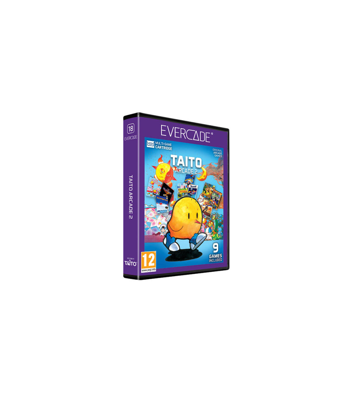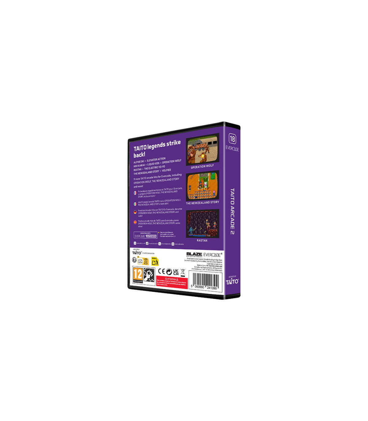 ¡Nueve grandes juegos arcade de Taito llegan a Evercade! Este cartucho de Evercade incluye los clásicos juegos de plataformas The NewZealand Story y Rastan, además del influyente shooter militar Operation Wolf. También incluye el thriller de espionaje Elevator Action, el juego de acción con temática de exorcismo Kiki Kaikai, las plataformas acuáticas de Liquid Kids, el control territorial de ciencia ficción de Volfied, y los juegos de habilidad de precisión The Electric Yo-Yo y Alpine Ski. Compatible con todos los dispositivos Evercade e HyperMegaTech! Super Pocket. Incluye Alpine Ski (1981), Electric YoYo (1982), Elevator Action (1983), Kiki Kaikai (1986), Rastan (1987), Operation Wolf (1987), The NewZealand Story (1988), Volfied (1989) y Liquid Kids (1990).