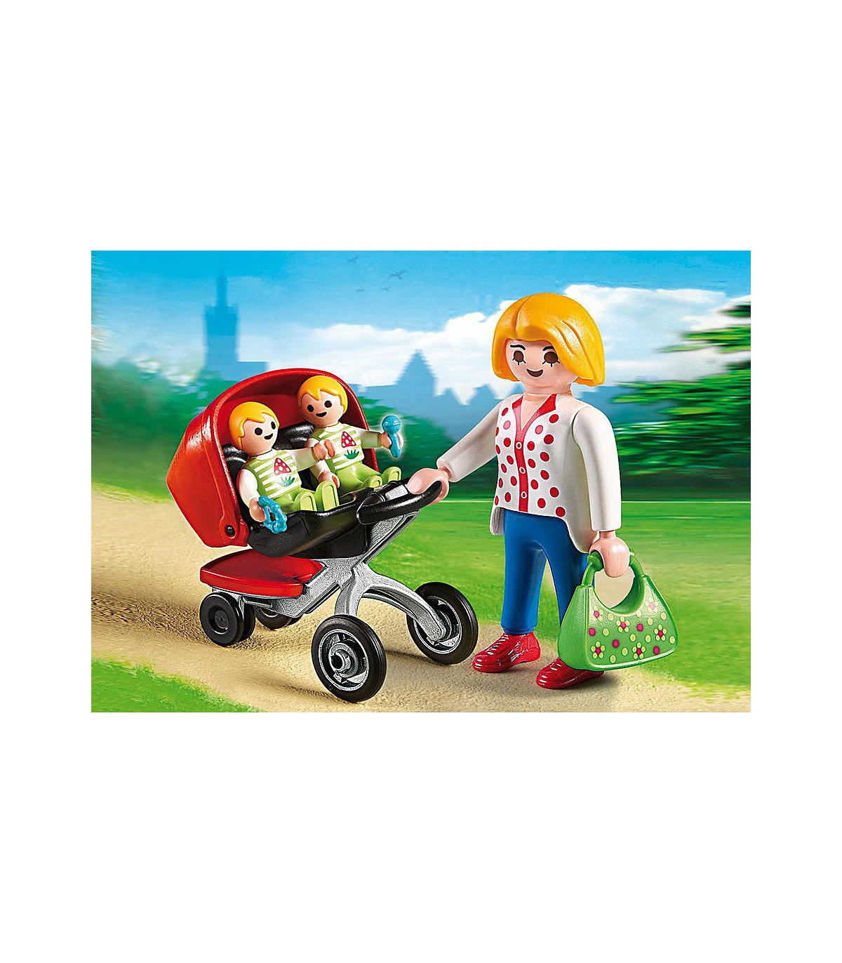 Playmobil Mamá Con Carrito De Gemelos Divertido set de Playmobil con cochecito gemelar. Incluye 2 bebés, mamá, bolso y 2 sonajeros.