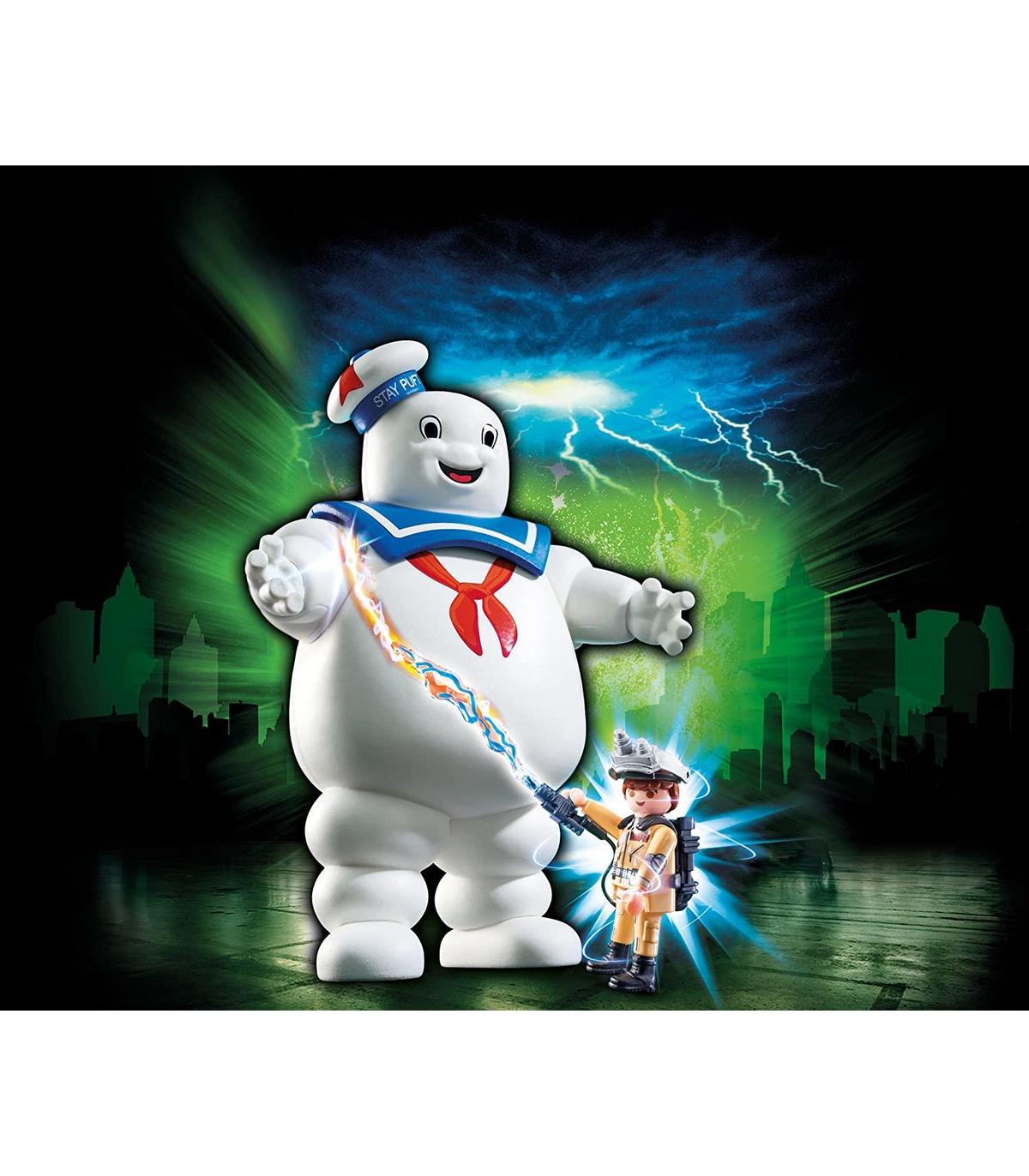 Con el cazafantasmas Ray Stanz. Dimensiones del mu?eco Marshmallow: 16 x 19 x 8,5 cm (LxPxA). Product 1: Diversión para pequeños cazafantasmas: PLAYMOBIL Muñeco Marshmallow y el héroe cazafantasmas Ray Stantz con sus ecto gafas, todo con gran lujo de detalles Product 1: Muñeco Marshmallow con brazos móviles y muñecas rotatorias para poder coger accesorios de PLAYMOBIL, 1 cazafantasmas con mochila y disparador de protones Product 1: Juego de figuras para niños a partir de 6 años: óptimo para el tamaño de sus manos y bordes redondeados agradables al tacto Product 1: Para jugar a diario: incluye instrucciones para montarlo con ayuda de los padres, alta calidad y diseño robusto, limpieza de las piezas (sin pegatinas) con agua corriente y sin químicos