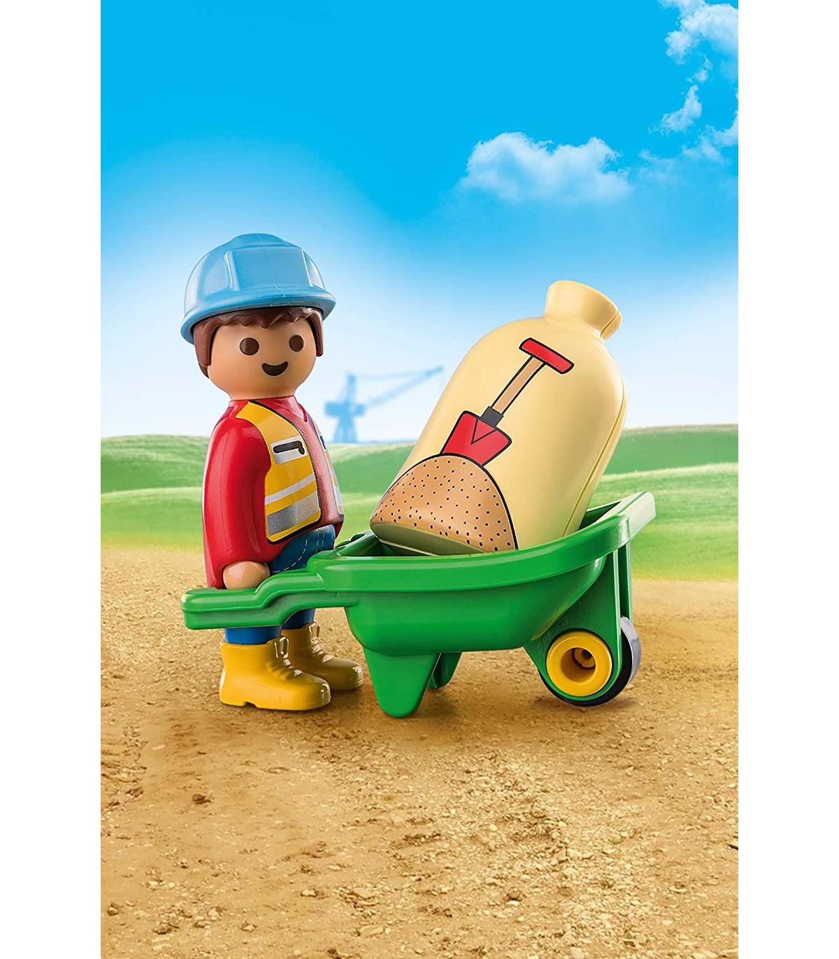 Un viaje lúdico de descubrimiento: PLAYMOBIL 1.2.3 Obrero de la construcción con carretilla para entrar en el mundo de PLAYMOBIL 1.2.3 - Sin piezas tragables