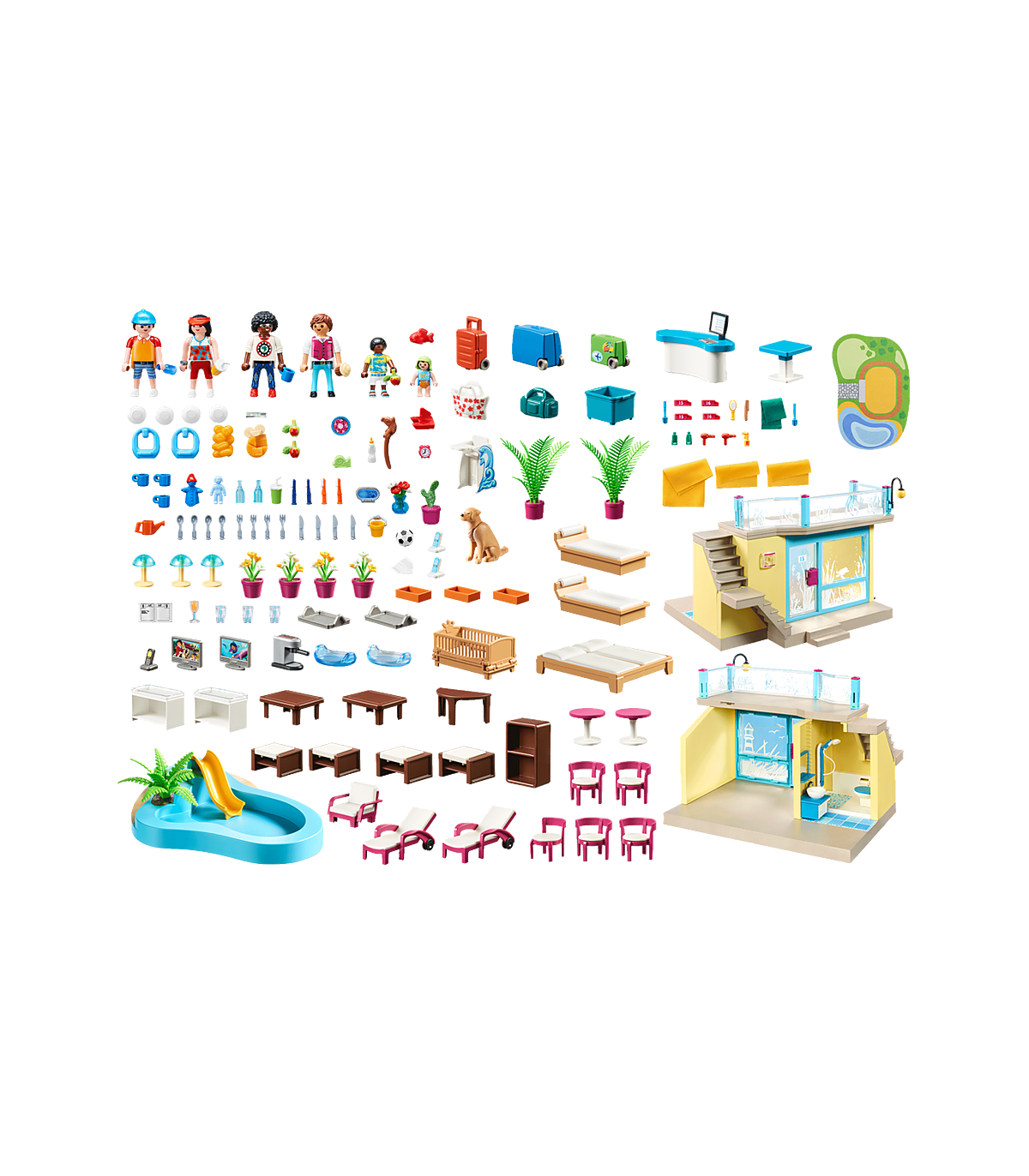Diversión en la granja de equitación PLAYMOBIL: Cumpleaños infantiles PLAYMOBIL en la granja de ponis con 2 ponis PLAYMOBIL, 1 madre, 2 niños y accesorios para la fiesta