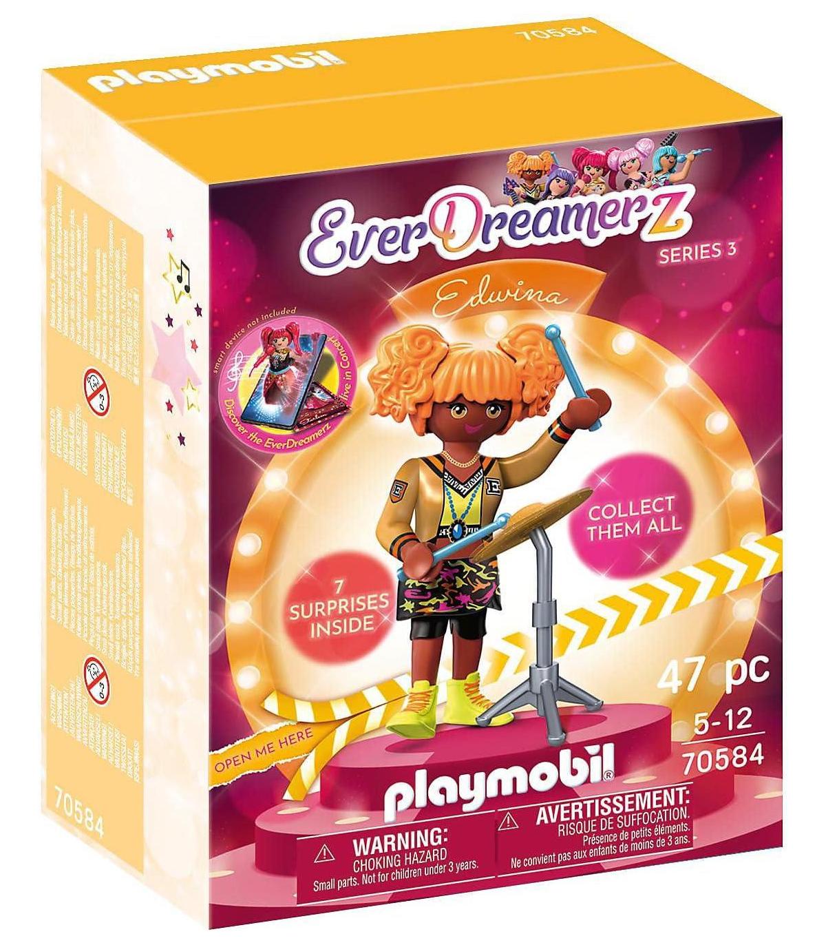 Edwina es la deportista de las chicas. Es aventurera, abierta a desafíos y le gusta probar cosas nuevas. Muestra su adaptabilidad y el sentido del ritmo con pasión en la batería. Incluye pulsera de silicona, perlas y amuleto de una batería, carta para coleccionar, pegatina y muchos accesorios. El emocionante viaje de ensueño de las EverDreamerz continúa. Esta vez el amuleto mágico lleva a las cinco amigas al glamoroso mundo de la música. La cantante Starleen está encantada de vivir finalmente su sueño de una gran carrera pop. Pero pronto las chicas se dan cuenta de que están atrapadas en un bucle temporal en el que todo se repite cada día. El astuto plan de Lady Nightmare parece funcionar. Edwina, la deportista, siempre está preparada para cosas nuevas, y después de poco tiempo muestra su talento en la batería. ¿Conseguirán Edwina y las EverDreamerz liberarse del ritmo interminable de esta pesadilla musical con pasión y sentido del ritmo? El juego contiene a la versátil del deporte, Edwina, con tambores y gato, pulsera de silicona, abalorios decorativos, pegatinas, carta y otros fantásticos accesorios. Con la función integrada de AR te acercas aún más al mundo de la música de EverDreamerz. Simplemente escanea la carta con tu smartphone y consigue la experiencia en vivo de EverDreamerz.