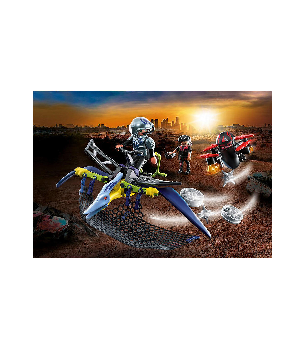 Dino-Power: PLAYMOBIL Pteranodon: Ataque aéreo con 1 Dino y Kaidan del Equipo Dino Rise, así como 1 dron robot y una figura de la Comet Corporation