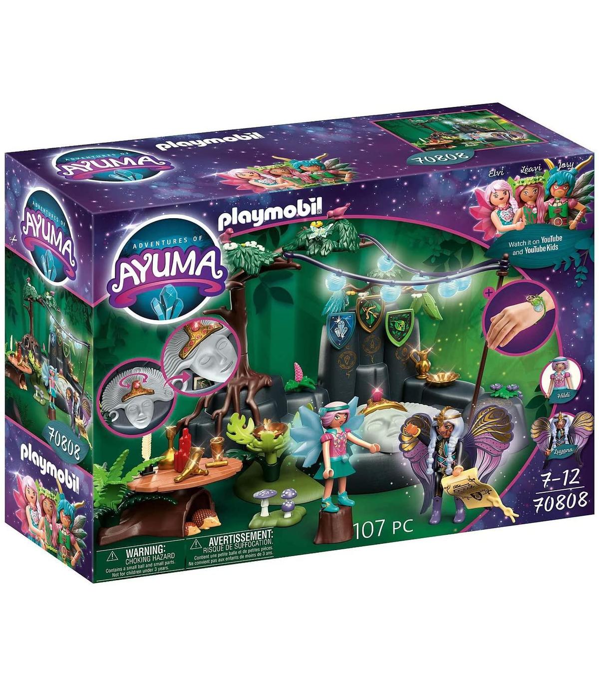 Contenido: 1x PLAYMOBIL Adventures of Ayuma Ceremonia de primavera, Set de 107 piezas con embalaje interior numerado e instrucciones de montaje: 1 meseta de roca, 2 figuras de hadas, 1 pulsera con 3 colgantes, 5 animales PLAYMOBIL, 98 accesorios, Material: Plástico, LxAxP: Aprox. 29 x 20 x 18,5 x cm, pulsera: 17 cm de largo, 5,5 cm de diámetro, Peso: 421 g, 70808