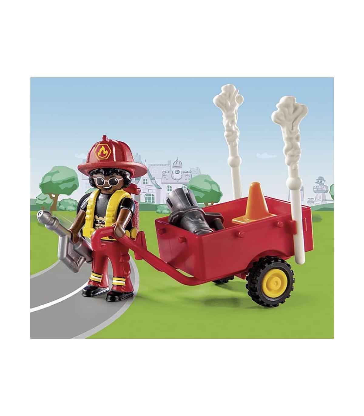 1 árbol en llamas, 1 gato, 1 figura infantil con casco extraíble y arnés de rescate, 1 cañón portátil de espuma contra incendios con 2 proyectiles y mucho más.