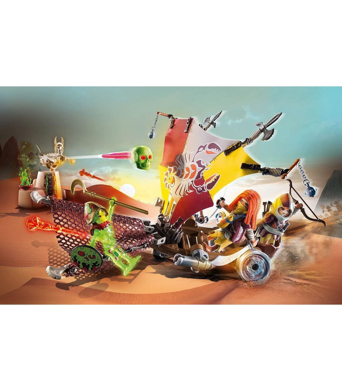Playmobil 71026 Sal'ahari Sands - Duna Los Ahari, un pueblo inteligente, que vive en el desierto. Playmobil 71026 Sal'ahari Sands - Duna Gracias a su ágil vela, pueden aprovechar el viento y lanzarse por las dunas en atrevidas maniobras. Con la red desplegable pueden atrapar a los atacantes o buscar en las dunas escorpiones y su valioso veneno. Incluye nuevos proyectiles de esponja y personajes Ahari.