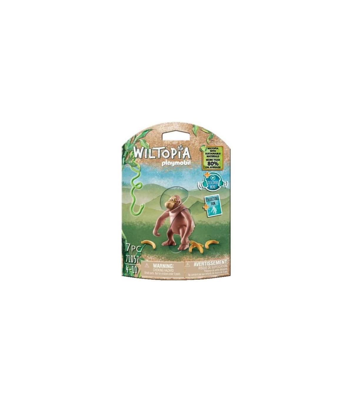 Playmobil 71057 Orangutan Al igual que los chimpancés y los gorilas, los orangutanes pertenecen a la familia de los grandes simios. Les gusta acurrucarse, limpiarse y acicalarse el pelo, gastar bromas, discutir y pelearse, igual que nosotros los humanos. Los orangutanes son muy ingeniosos y pueden incluso fabricar instrumentos y herramientas. Por ejemplo, utilizan palos como lanzas para pescar. Los simios construyen sus nidos en lo alto de los árboles. Allí están bien protegidos de los depredadores. Wiltopia invita a los niños y niñas a descubrir las regiones de nuestro mundo que merecen ser protegidas y a sus habitantes animales. Además, combina el juego y el aprendizaje de una manera única. El set PLAYMOBIL incluye un organután, una liana, cuatro plátanos y una tarjeta de conocimiento. El mono puede inclinar su cabeza hacia arriba y hacia abajo y mover sus brazos y piernas individualmente. Consigue conocimiento extra: La aplicación web de Wiltopia ofrece contenidos adicionales de audio y vídeo y lleva a los niños y niñas directamente al hábitat de los animales. Basta con escanear el código QR de la tarjeta de conocimiento de los animales y el detallado mundo animal y vegetal llega a tu casa. Utiliza la genial función de RA para hacerte un selfie con un orangután. Wiltopia - Maravilloso para el medio ambiente Wiltopia es la primera gama de productos PLAYMOBIL fabricada con una media de más del 80% de material sostenible. Los residuos de plástico desechados tienen una nueva vida y sirven como fuente de material para este extraordinario mundo de juego. Así se conservan los recursos y, sobre todo, el medio ambiente. Por supuesto, todos los productos Wiltopia cumplen con los altos estándares de seguridad habituales y con la calidad y durabilidad probadas de PLAYMOBIL.