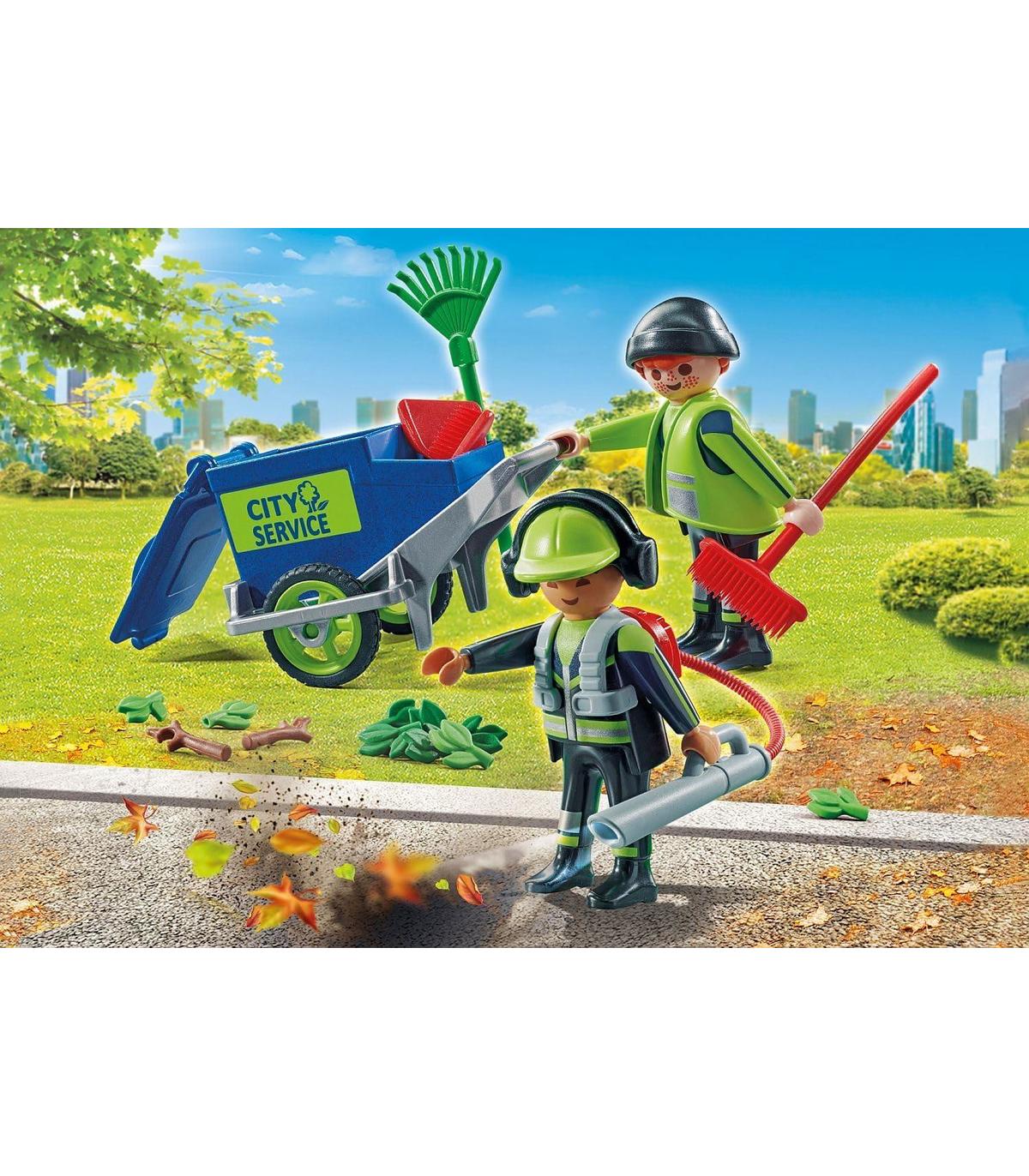 Métete en el fascinante papel de tu héroe cotidiano favorito uniéndote al impresionante equipo de limpieza urbana PLAYMOBIL. Utiliza rastrillos, escobas y sopladores de hojas para limpiar y deshacerte de hojas y ramas