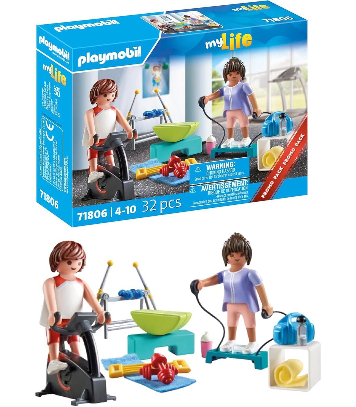 Playmobil 71806 Entrenamiento Fitness ¡Atención fanáticos del deporte: ¡Uno, dos, tres! ¡Hoy es día de hacer ejercicio! También las figuras quieren mantenerse en forma. En el entrenamiento físico se pueden ejercitar todos los músculos, con ejercicios aeróbicos o levantando pesas. Creatividad sin límites: Los sets de juego de PLAYMOBIL se pueden combinar y ampliar como desees. ¡El entrenamiento físico es una excelente adición a otros mundos de PLAYMOBIL! ¿Cómo continuará tu historia de PLAYMOBIL? Diversión garantizada para niños y niñas a partir de 4 años: Diseño ideal para las manos de los más pequeños gracias a su tamaño adaptado a la edad y su tacto agradable con bordes redondeados. Estimula la imaginación de tu hijo o hija. Juego seguro: Incluye instrucciones para montar el set junto con los padres. Limpieza de las piezas (sin adhesivos) bajo agua corriente y sin el uso de productos químicos.