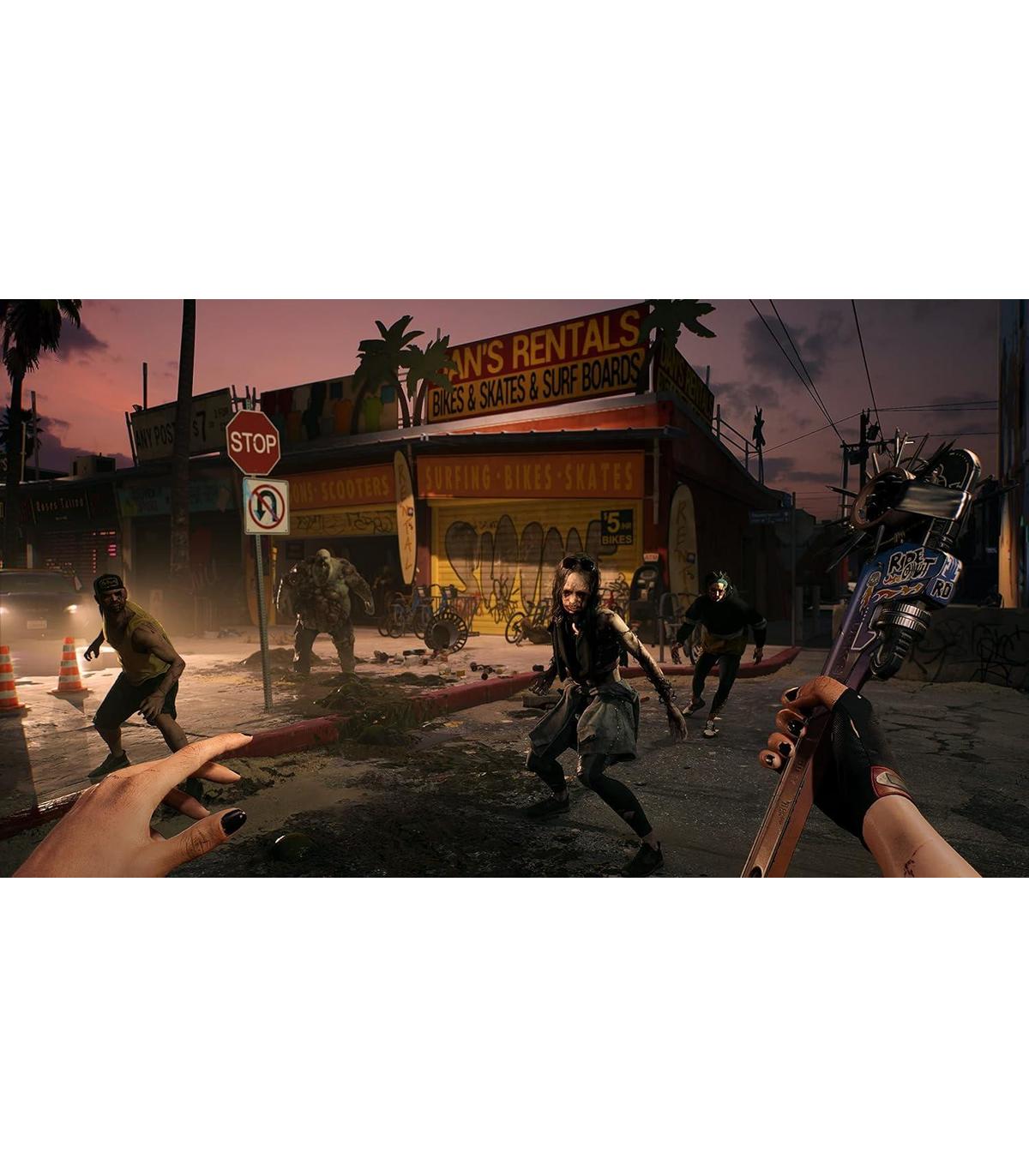 Un virus mortal se está extendiendo por Los Angeles, convirtiendo a sus habitantes en voraces zombis. La ciudad está en cuarentena y los militares se han retirado. Mordido, infectado, pero más que inmune, aprendes a aprovechar al zombi que llevas dentro. Solo usted, y el puñado de otros imbéciles fanfarrones que resultan ser resistentes al patógeno, mantienen el futuro de Los Angeles (y de la humanidad), en la balanza. A medida que descubras la verdad detrás del brote, descubrirás quién o qué eres. Sobrevive, evoluciona, salva el mundo, ¡otro día más en Los Angeles! Dead Island 2 es un emocionante juego de rol de ficción en Primera Persona que lleva a los jugadores a través de un nuevo patio de recreo. Elegante, vibrante e inundada de infección zombi, explora la icónica y empapada de gore Los Angeles. Conoce a personajes más grandes que la vida. Mata a innumerables enemigos con detalles exquisitamente sangrientos. Y evoluciona para convertirte en el Mata Zombis Definitivo.