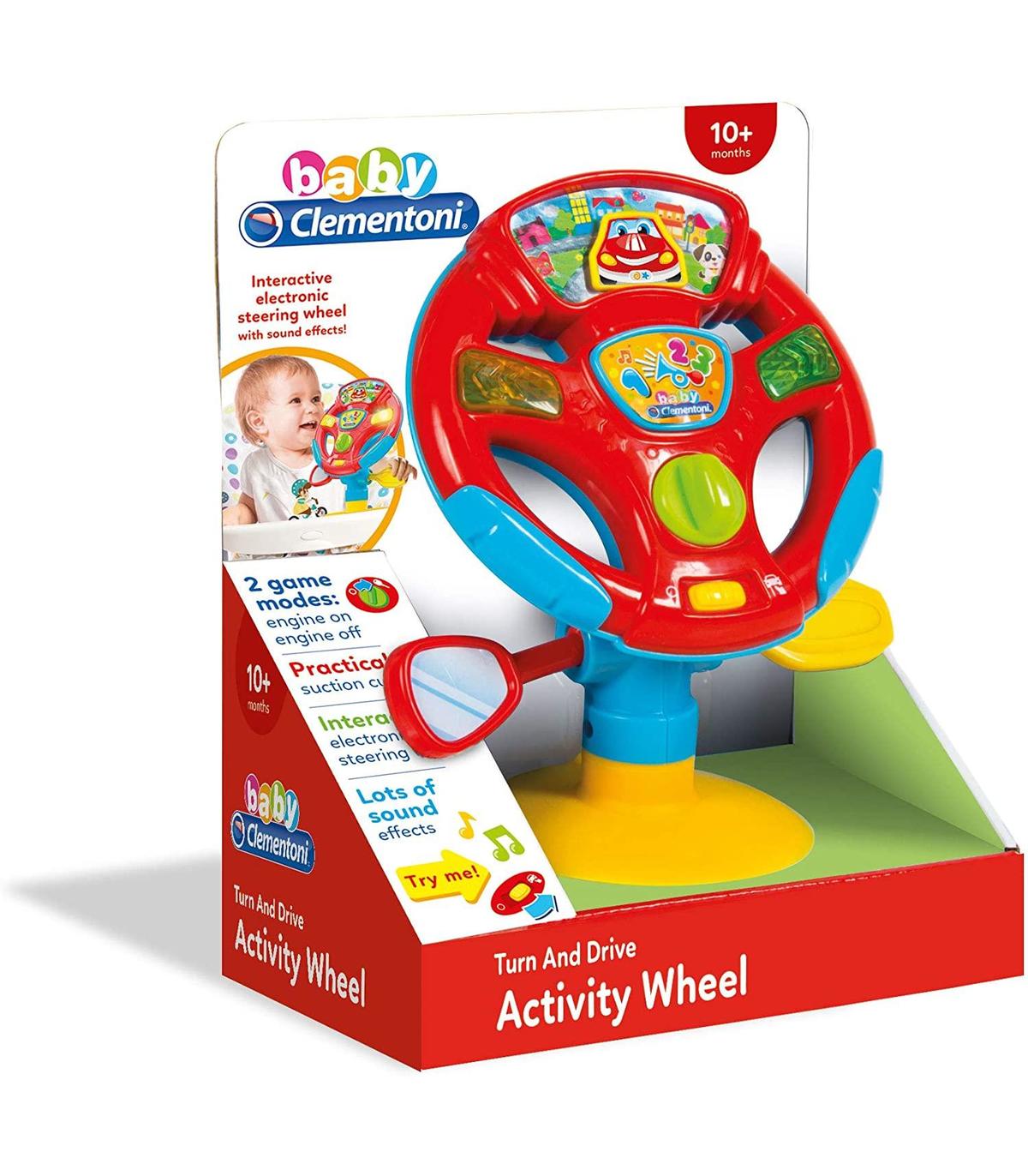 Volante de Actividades Volante de Actividades para una diversión a toda velocidad Su botón educativo guía al niño en el descubrimiento de los números con canciones infantiles Girando el volante, el coche interactivo se mueve de derecha a izquierda a lo largo de la carretera decorada, activando el contenido que recrea la experiencia de la auténtica conducción Los espejos retrovisores y la palanca de cambios se mueven para dar actividad mecánica y ayuda al niño a desarrollar las habilidades manuales