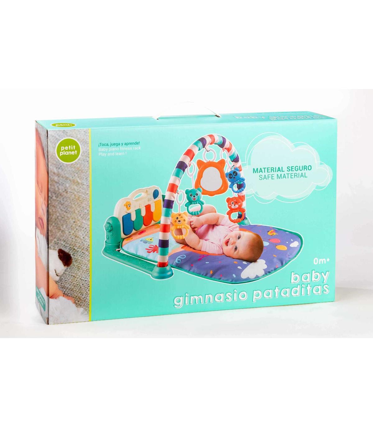 Divertido gimnasio infantil de la marca Petit Planet, que se adapta a las diferentes etapas de crecimiento del bebé. Reproduce sonidos de alta fidelidad. Además, incluye diferentes sonajeros que se pueden colgar y que también son mordedores. Fabricado con materiales seguros.