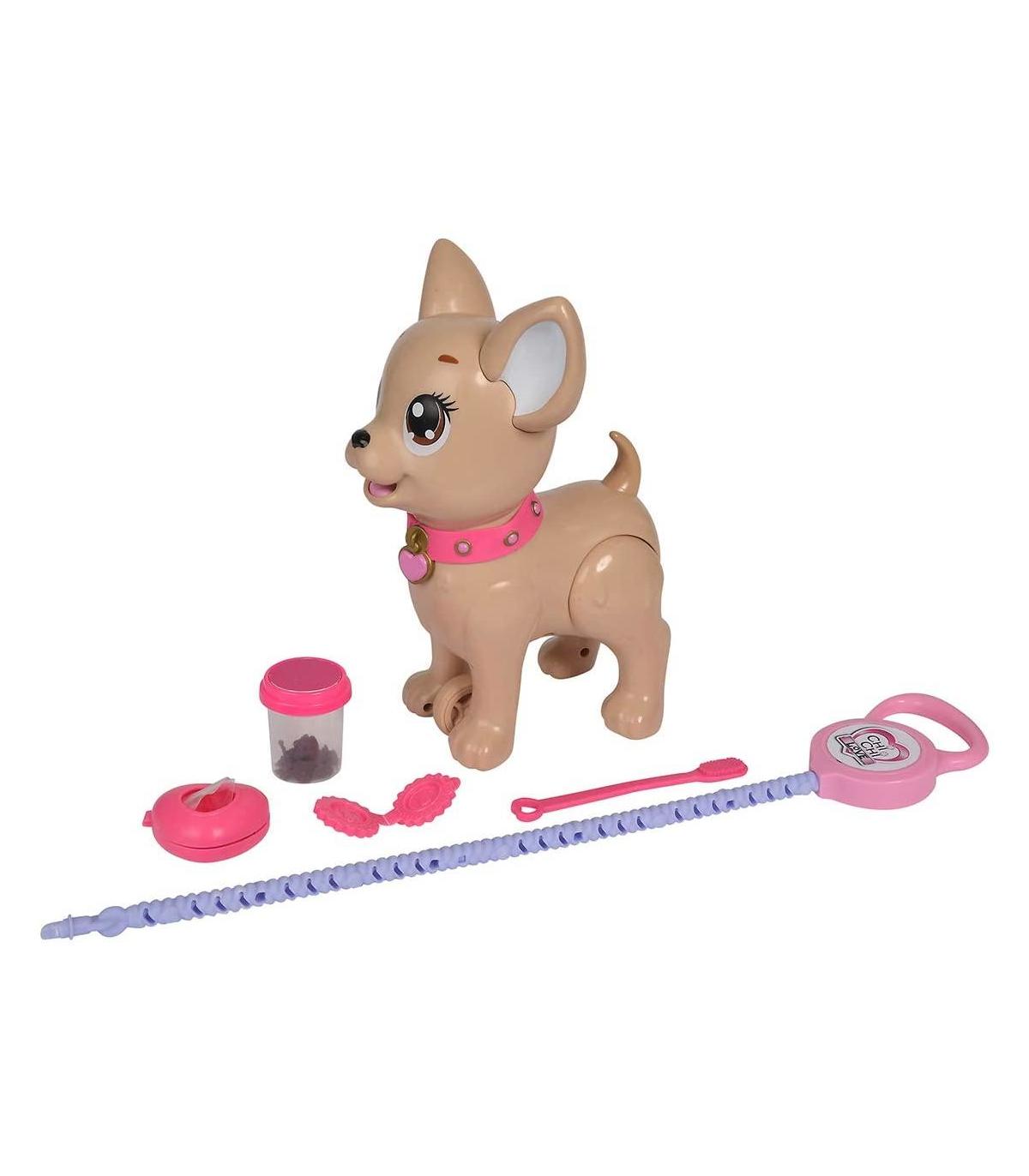 Da de comer sus galletitas de plastilina a tu perrito Chi Chi Love. Luego sal de paseo con el y recoge sus necesidades. Incluye bote de plastilina.
