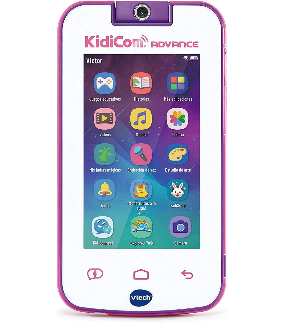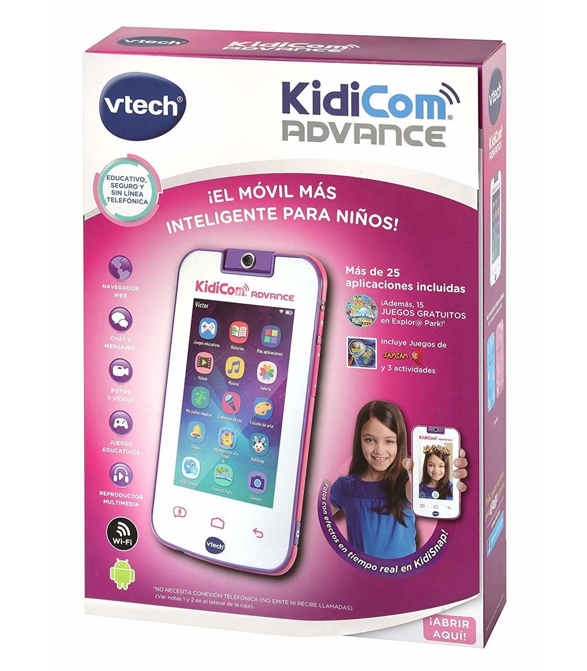VTech Kidicom Advance Rosa ¡Mucho más que un móvil para niños! Sin necesidad de conexión telefónica, gracias a la conexión Wi-Fi y a la app KidiConnect incluida, podrán chatear e intercambiar mensajes de voz y texto, fotos, dibujos y emoticonos con los smatphones de la familia y amigos, de forma fiable y segura. Más de 25 aplicaciones incluidas. Más de 25 aplicaciones incluidas: juegos, cámara de fotos, grabación y reproducción de vídeo, galería, mp3, navegador web, bloc de notas, calendario, reloj y alarma, objetivo giratorio 180° Botón de acceso directo a la cámara ; con conexión wi-fi y la nueva app kidiconnect de vtech, para chatear y compartir mensajes con los smartphones o tablet de los padres y familiares Controles parentales para gestionar las aplicaciones, limitar el tiempo de uso de kidicom max o controlar los contenidos de su navegador web Batería recargable de litio (capacidad 2200 ma); sistema: android os 6.0; pantalla táctil 5; memoria 8 bg (ram 1 gb) ampliable a 40 gb con tarjeta microsd (no incluida); conexión wi-fi: 802.11n Ayuda al niño a comunicarse con sus familiares gracias a la sencilla aplicación kidiconnect de vtech; las herramientas y aplicaciones permiten a los niños familiarizarse con las nuevas tecnologías Versión española