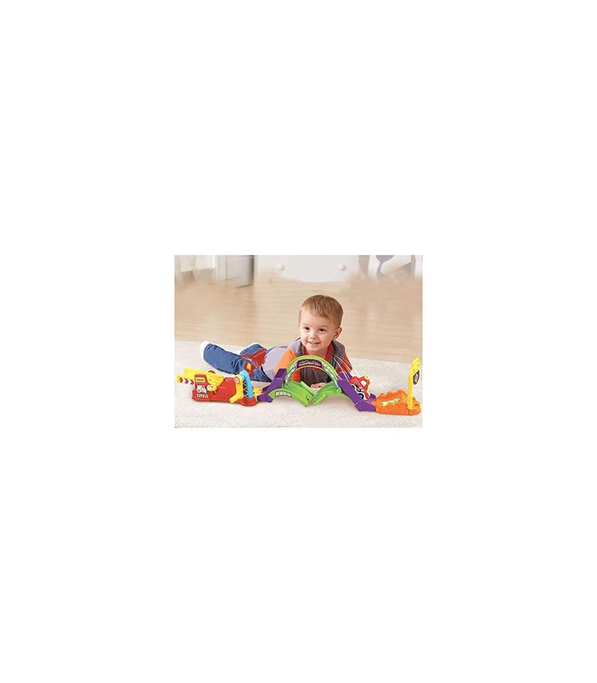 Los tramos de pista permiten realizan diferentes configuraciones; con el lanzador se proyecta al tut tut y mediante la manivela realizará un giro de 360º y podrá hacer un descenso a toda velocidad