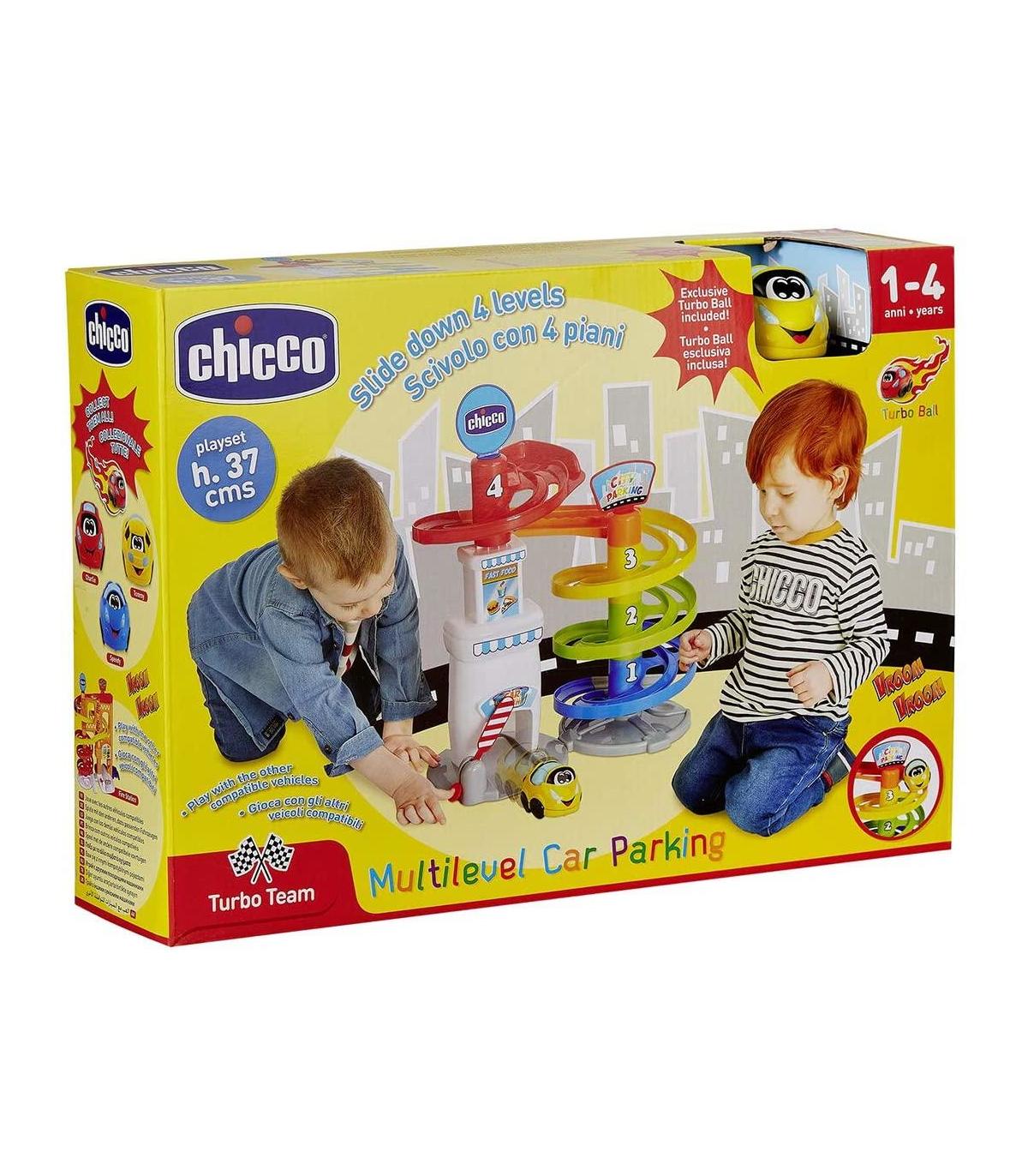 El Parking Turbo Touch de Chicco es un conjunto de juegos donde todos los coches Turbo Balls pueden aparcar, restaurarse y prepararse para nuevas aventuras. Con 37 cm de altura, este parking cuenta con un tobogán de 4 niveles donde colocar a los coches y que rueden hacia abajo cada vez más deprisa. Este juguete es fácil de montar y desmontar cuando los niños terminen de jugar. Incluye un Turbo Ball amarillo. Ideal de 1 a 4 añitos.