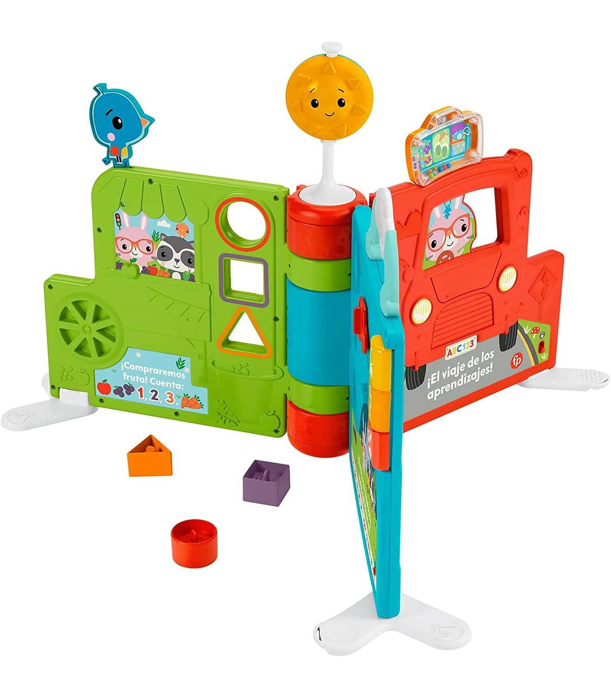 Juguete de aprendizaje electrónico 2 en 1 que se transforma de libro de cuentos para jugar sentado a centro de actividades sólido y vertical con 360 grados de juego