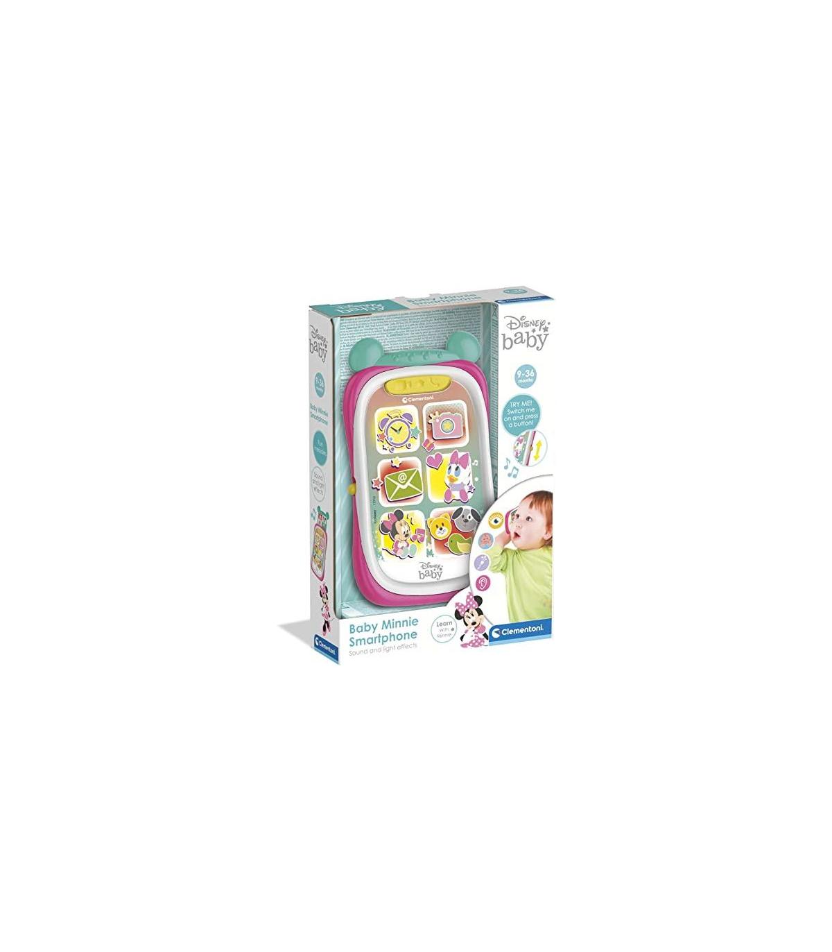 Baby Minnie Smartphone Este divertido teléfono es un centro de actividades con 6 teclas interactivas que se iluminan. El botón emergente crea un efecto sorpresa y simula la función de llamada. Estimula la destreza manual, la percepción visual y la comprensión de la relación causa-efecto. Con efecto de pantalla táctil, divertidos efectos de luz y efectos sonoros, para una experiencia de juego estimulante. Juguete a partir de 9 meses