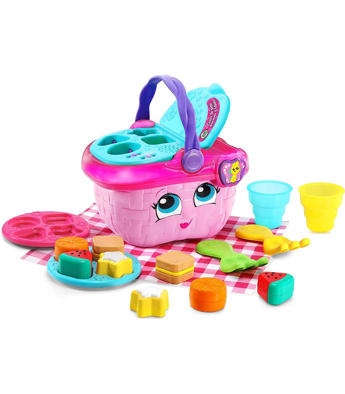 Juega y aprende con el picnic de 16 piezas que incluye 8 alimentos, 2 platos, 2 tenedores, 2 vasos 1 mantel y 1 cesta