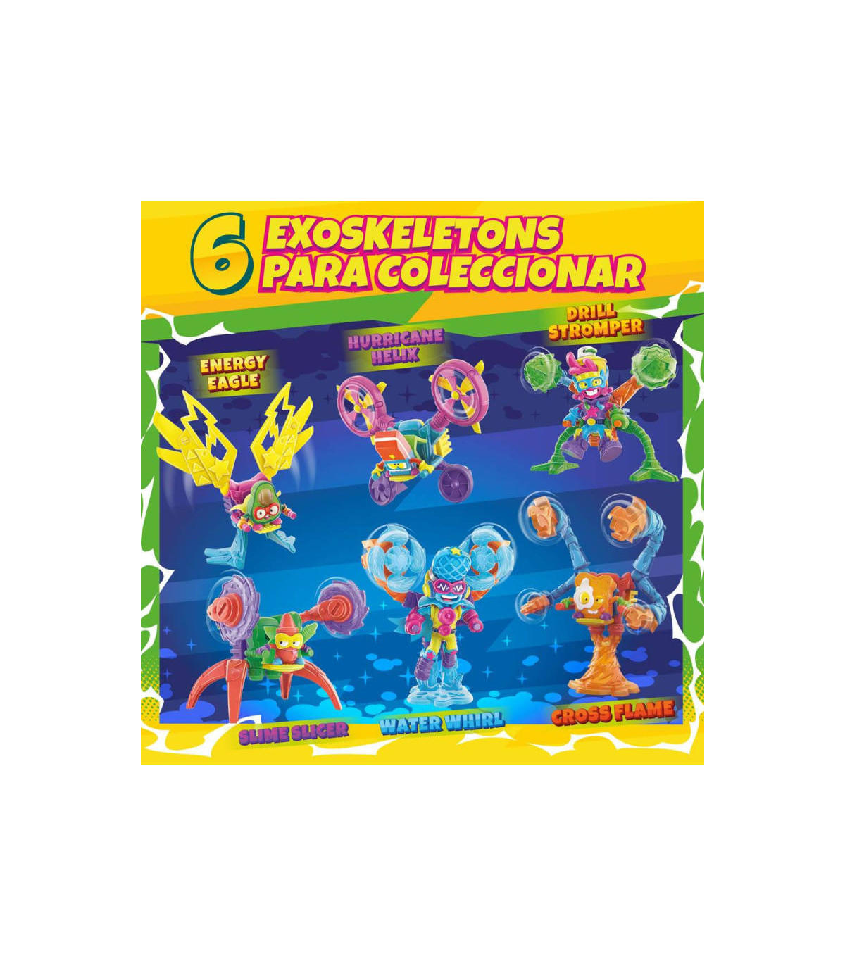 Este producto tiene varios modelos surtidos, se envian aleatoriamente, precio de una unidad. Por primera vez, ¡llegan los Exoskeletons! Estas armaduras con sus brazos móviles y ataques especiales ¡no tienen rival! Fruto de la tecnología del Profesor K, recibieron el poder neón de ColorFlash y ahora son aún más imparables. Héroes y villanos, SuperThings y Kazoom Kids, se han hecho con ellos, así que, la batalla será más loca que nunca. ¡Colecciona los 6 modelos y encuentra al Exoskeleton dorado! Contiene: 1 SuperThing 1 Exoskeleton