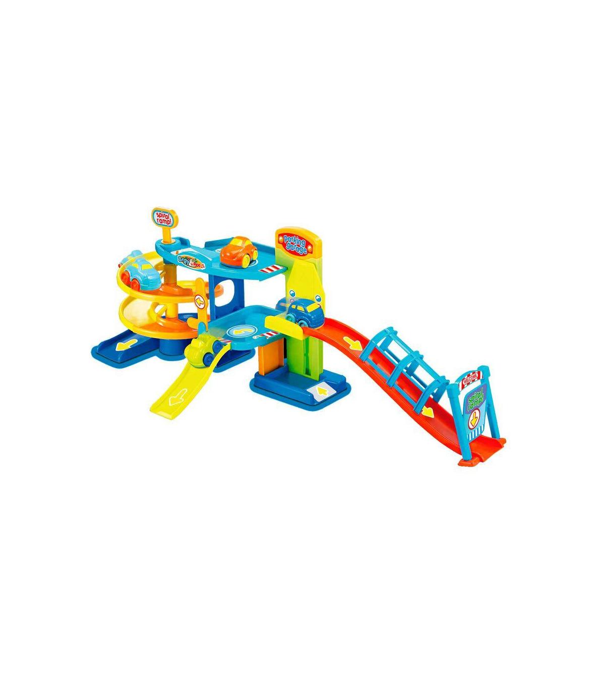 Un volante luminoso para pequeños conductores. Diferentes elementos para manipular: llave de contacto, claxón, intermitentes.