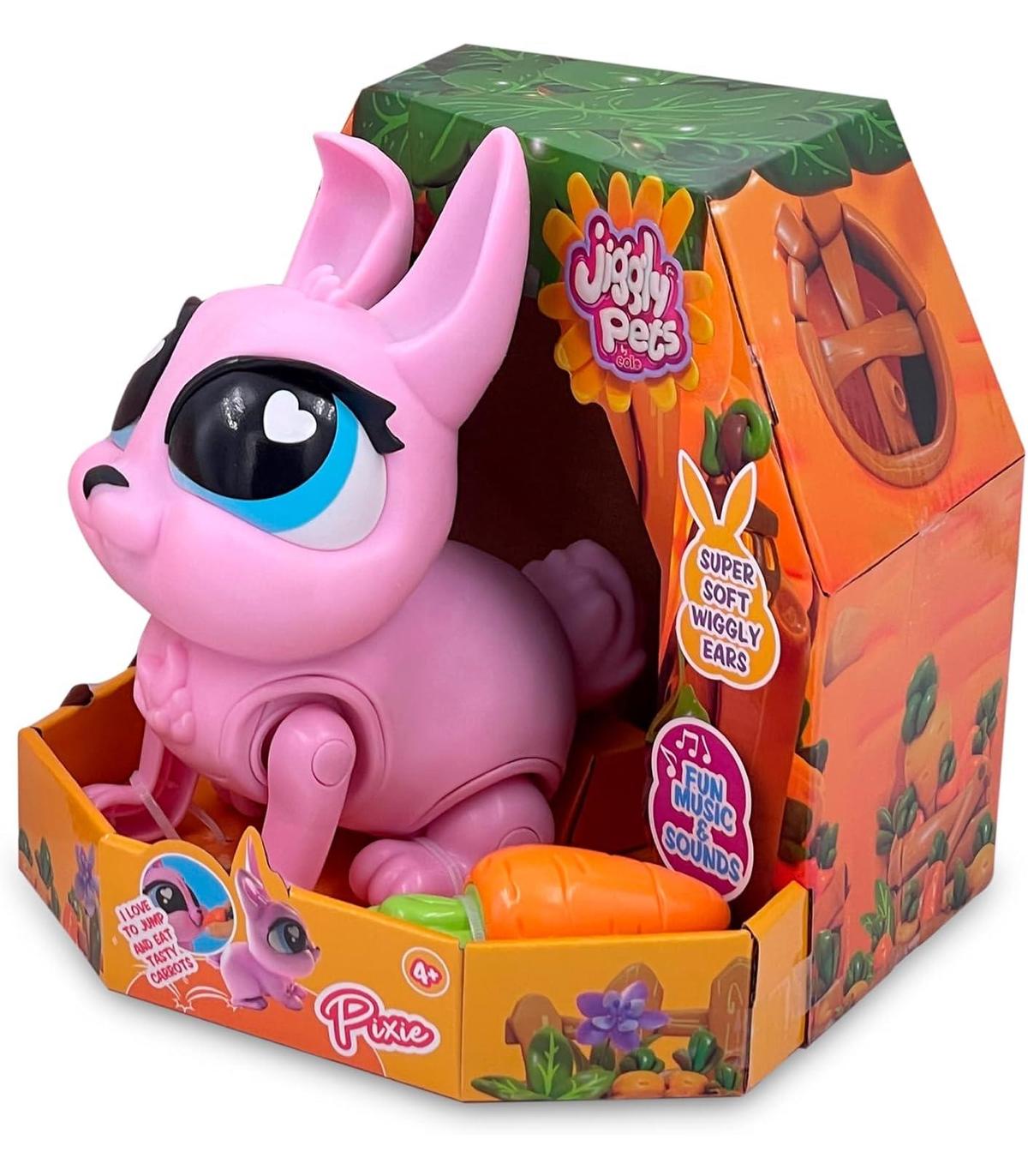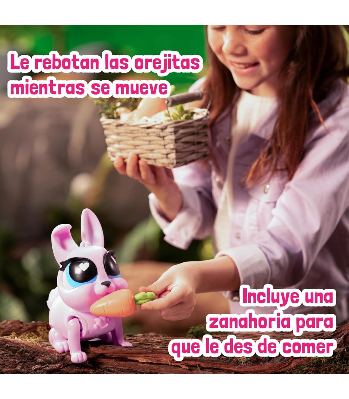 PIXIE, LA CONEJITA QUE PASEA - A Pixie le encanta pasear y saltar; con un toque en su cabeza irá contigo a todas partes MASCOTA CANTANTE - A tu conejita Pixie le encanta la música, canta y emite dos sonidos pegadizos y hace pequeños contoneos mientras pasea y salta; Tócale la cabeza y sonarán dos melodías pegadizas; Te encantará descubrir todos los sonidos que hace mientras juega DAME DE COMER - A Pixie le encantan las zanahorias, así que viene con una simpática zanahoria para que le des de comer. Observa cómo ¡reacciona ante la comida! MATERIAL SÚPER SUAVE - Este simpático conejo está cubierto de silicona, tiene la piel suave y blandita CON MOVIMIENTO: Mira cómo le rebotan las orejitas mientras se mueve; Pixie puede caminar y hace un montón de graciosos contoneos EDAD RECOMENDADA - Este juguete está recomendado para niños y niñas a partir de 4 años de edad; las pilas vienen incluidas