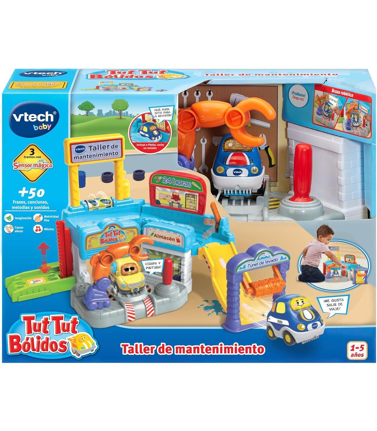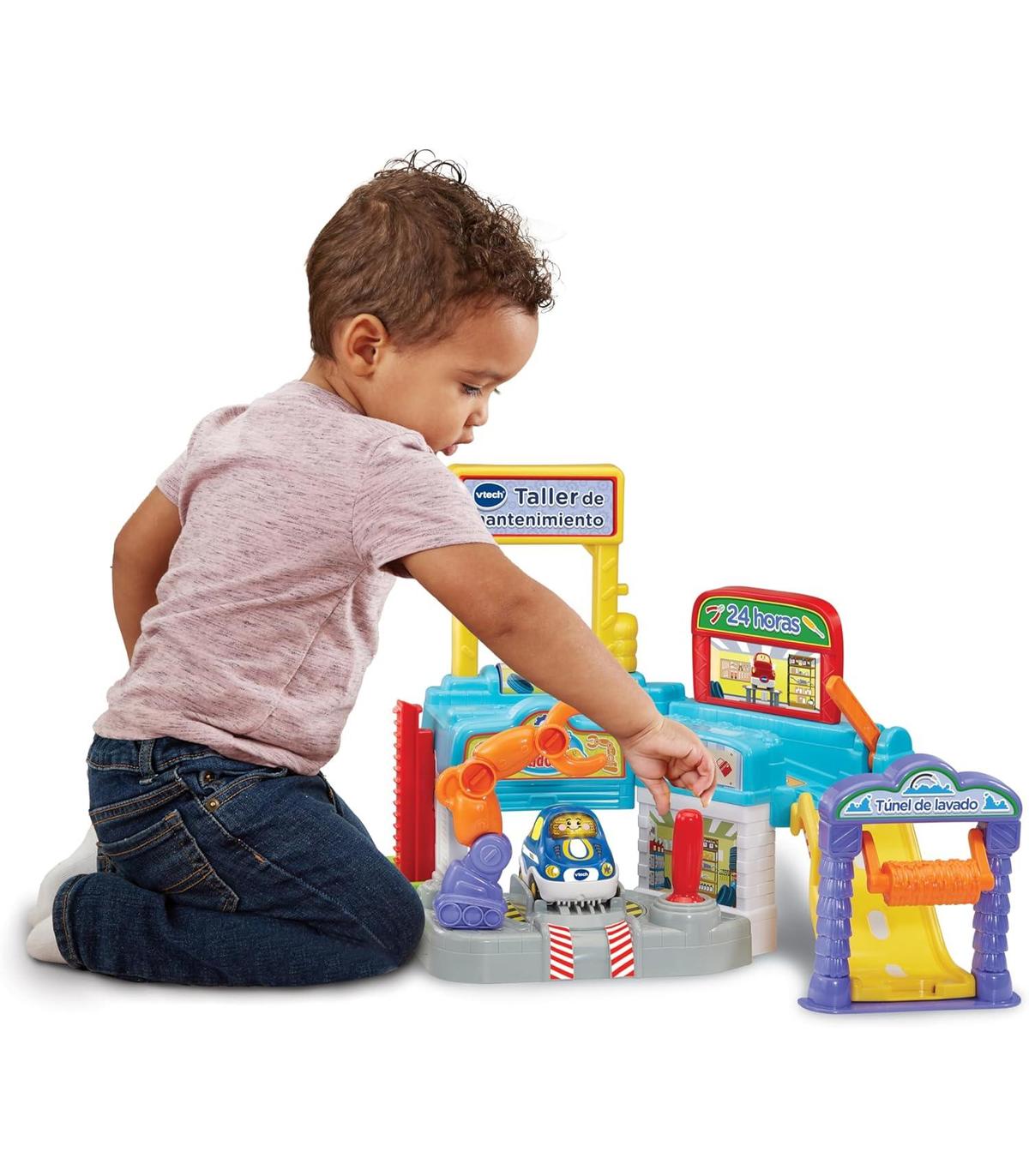 SENSORES MÁGICOS – Tu hijo podrá activar frases, sonidos y canciones al pasar con el vehículo por los tres sensores ubicados en el ascensor, el taller y la zona de puesta a punto, enriqueciendo su experiencia de juego.
