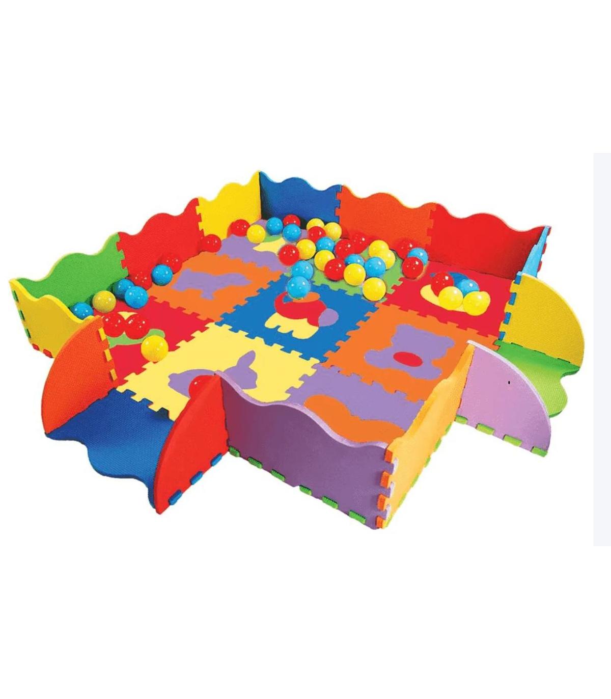 El Tapiz de Goma EVA con 40 bolas de PVC de Infant Planet es el espacio de juego ideal para que los más pequeños disfruten de manera segura y divertida. Con piezas encajables de colores vivos y diseño acolchado, crea una zona protegida donde jugar, gatear o lanzar las pelotas incluidas. Características principales Tapiz de piezas de goma EVA encajables con ilustraciones y colores llamativos. Incluye 40 bolas de PVC multicolores. Superficie acolchada que protege frente a golpes y caídas. Diseño desmontable, fácil de montar y guardar. Edad recomendada: a partir de 18 meses. Beneficios para el desarrollo Motricidad gruesa: fomenta el gateo, el movimiento libre y el equilibrio. Coordinación: al jugar con las bolas, desarrollan la coordinación ojo-mano. Imaginación: el tapiz se convierte en escenario de juegos creativos. Seguridad: la superficie acolchada ofrece un entorno de juego protegido. Ideas de juego Crear una mini piscina de bolas, practicar lanzamientos divertidos, construir un espacio cerrado con las piezas o inventar circuitos de juego. ¡Un tapiz versátil que crece con el peque! Advertencias No apto para menores de 18 meses. Conservar el embalaje para futuras consultas. Los colores y detalles pueden variar respecto a las ilustraciones.