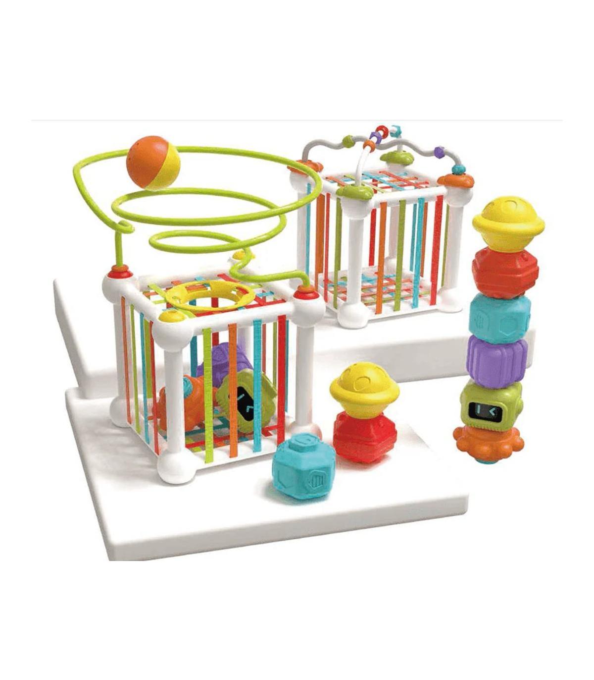 Este cubo de actividades multifunción ofrece diferentes formas de juego en cada una de sus caras, permitiendo descubrir nuevas habilidades mientras se divierte. Fabricado con materiales seguros y resistentes, incorpora piezas grandes adaptadas a las manos pequeñas.