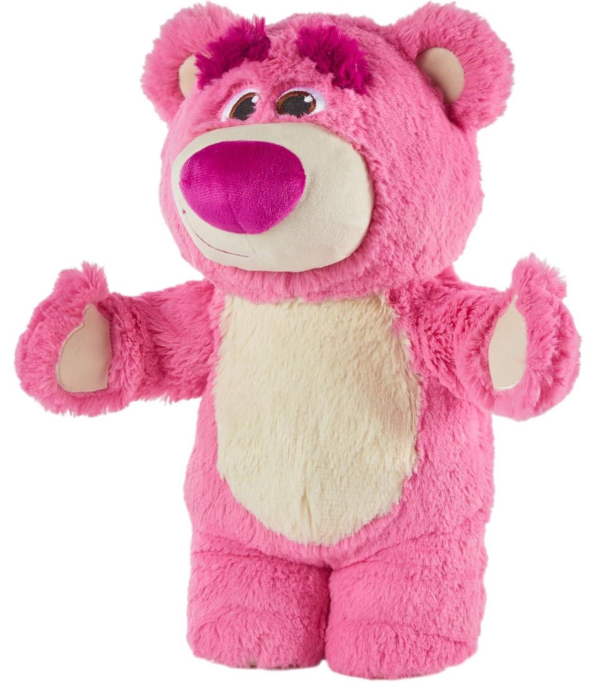 Este oso de color magenta mide 34,93cm de alto y 25,4cm de ancho, y es fácil de identificar como personaje de Toy Story gracias a su diseño fiel a la película.