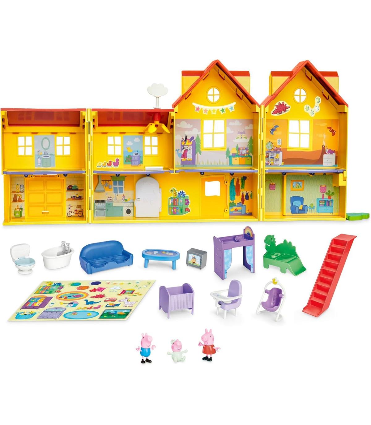 UNA CASA DE PEPPA PIG FAMILIAR DE 80 CM PARA JUGAR: Esta gran casa de muñecas Peppa Pig tiene 2 pisos y 7 habitaciones, como en la serie. Niñas y niños a partir de 3 años pueden abrirla con su llave mágica y descubrir un mundo lleno de aventuras y diversión.