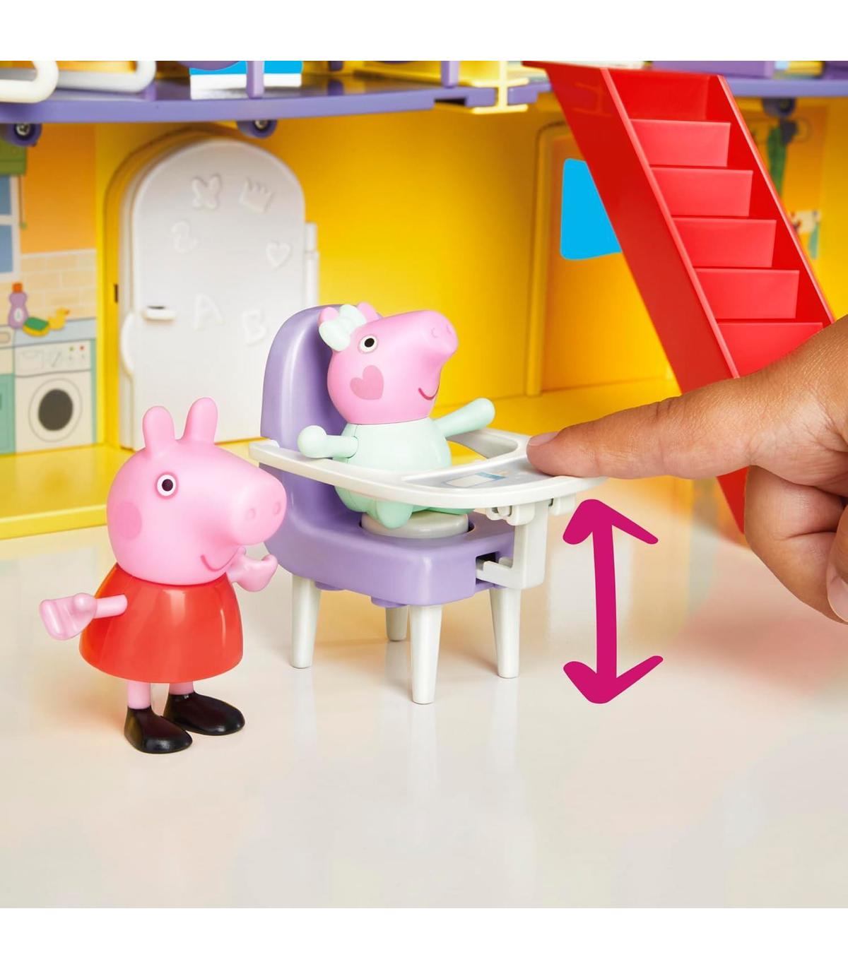 DALE LA BIENVENIDA A BEBÉ EVIE: La casa de Peppa Pig incluye 3 accesorios especiales para Evie: mecedora convertible en cuna, saltador y silla alta. Los más pequeños disfrutarán de imaginar cómo la familia cuida de la bebé, reforzando la creatividad en su juego de casa.