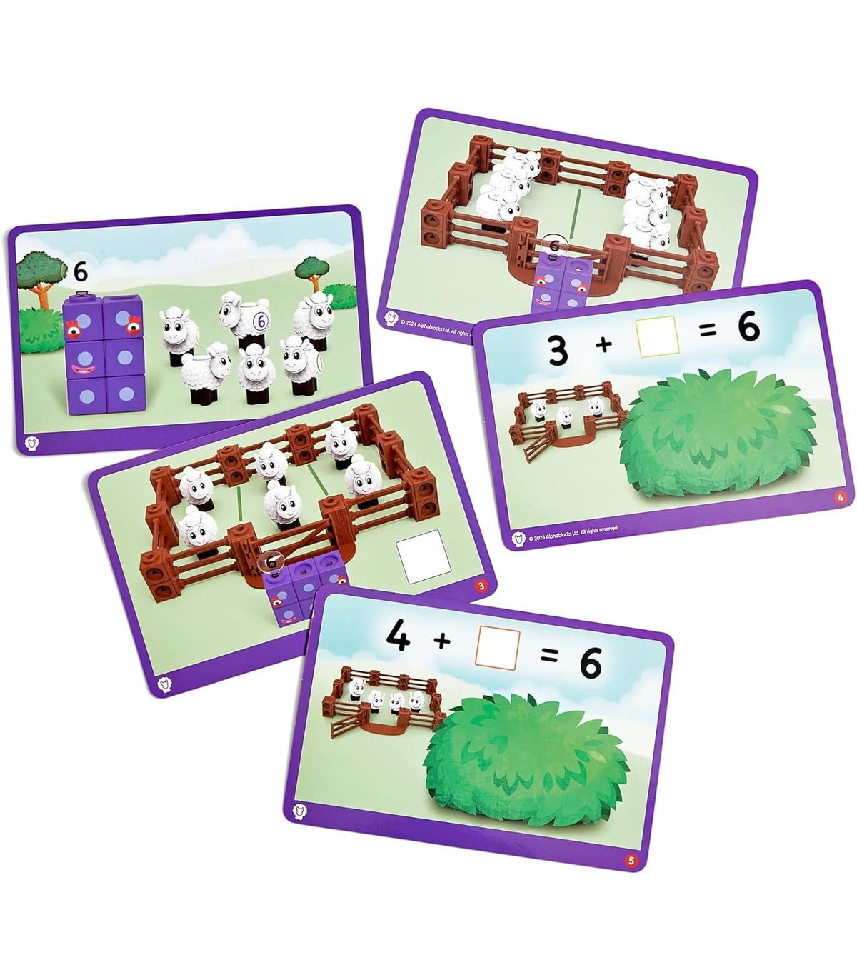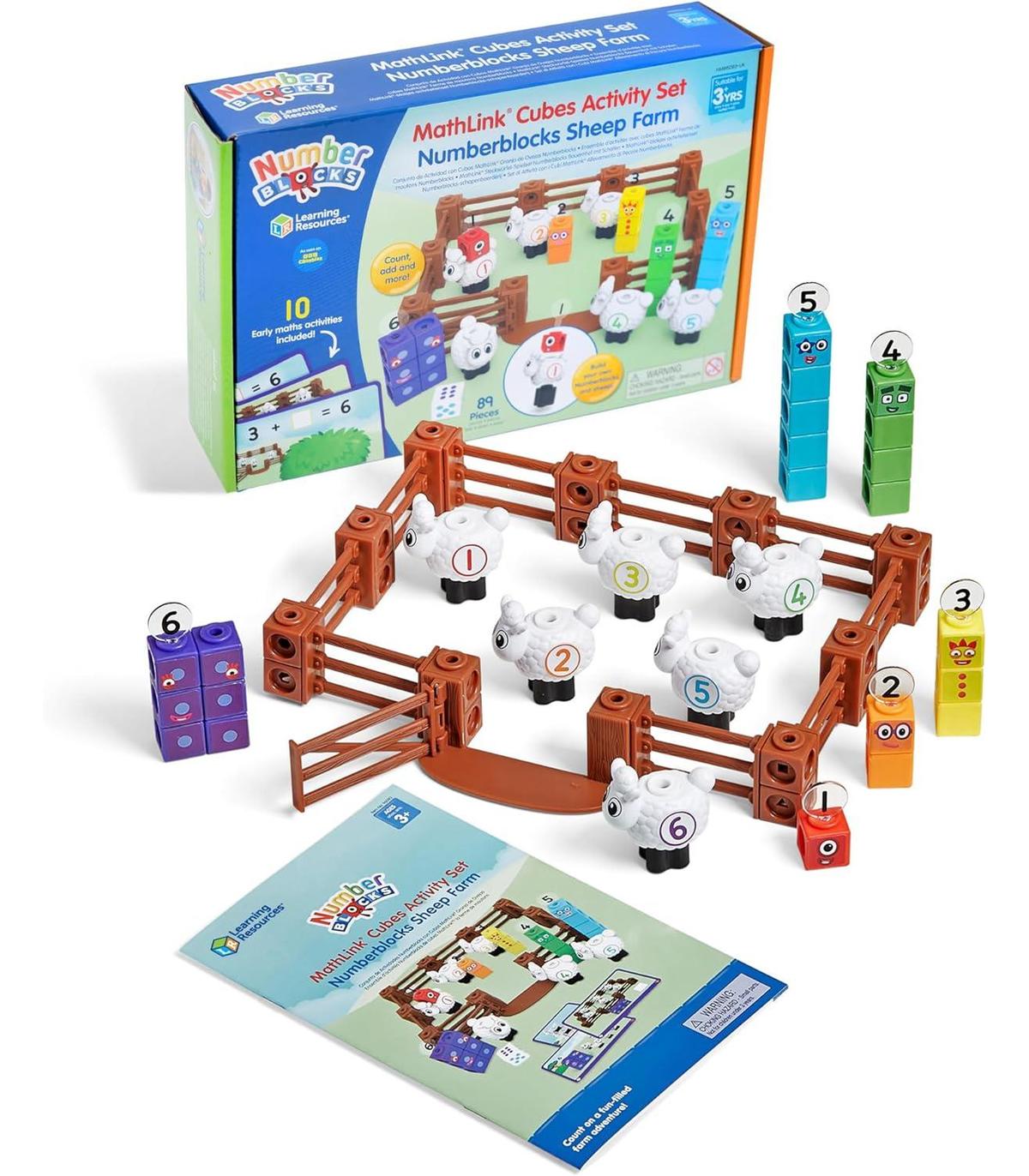 Learning Resources Numberblocks Set de Actividades de la Granja Contando ovejas CONSTRUYE TU PROPIA GRANJA DE JUGUETE: con este set basado en el episodio Contando ovejas de Numberblocks, los niños utilizan cubos MathLink con los colores oficiales de Numberblocks para construir los números del uno al seis, ovejas y un corral. 10 ACTIVIDADES DE MATEMÁTICAS INCLUIDAS: los niños utilizan el dado y las tarjetas incluidas para realizar 10 actividades de matemáticas para los primeros años para contar, sumar y restar. Se divertirán con un juego práctico e interactivo. Los niños pueden ver el episodio Contando ovejas y realizar las actividades al mismo tiempo para reforzar el aprendizaje en pantalla. Este set es adecuado para aprender jugando en clase o en casa. JUEGA Y EMPRENDE LA AVENTURA EN LA GRANJA: este divertido juego educativo para niños de más de 3 años ayuda a aprender habilidades esenciales para los primeros años mientras construyen y juegan. También disfrutarán utilizando la imaginación. INCLUYE: 53 cubos MathLink, 6 números, 6 ovejas de 2 piezas, 9 piezas de valla, 1 pieza de puerta, 1 dado, 1 hoja de pegatinas, 5 tarjetas de actividad de doble cara y soporte, y una guía de actividades multilingüe. JUGUETES OFICIALES DE NUMBERBLOCKS: juega y aprende con los juguetes y juegos oficiales de Numberblocks fabricados por la empresa líder en juguetes educativos Learning Resources.