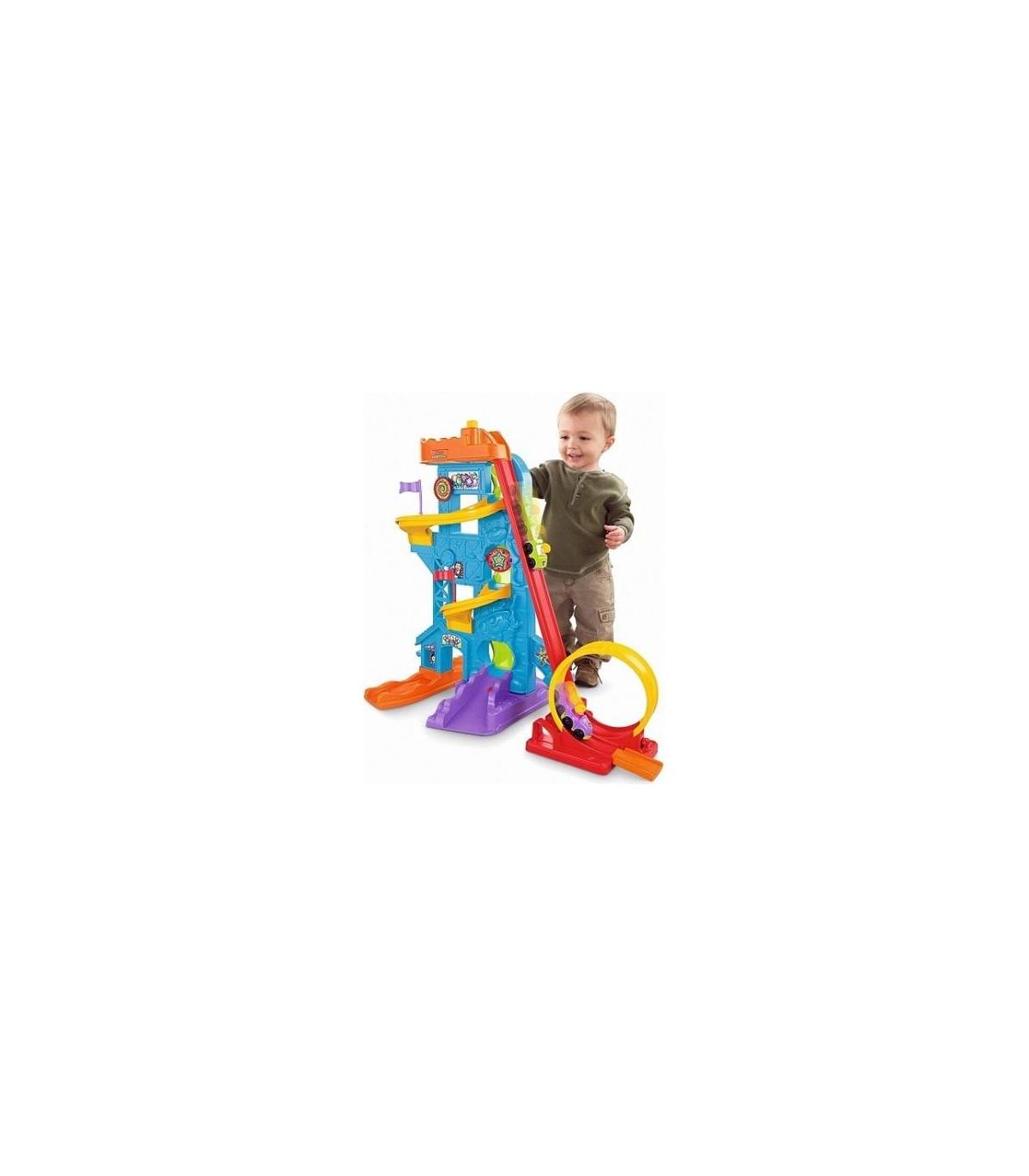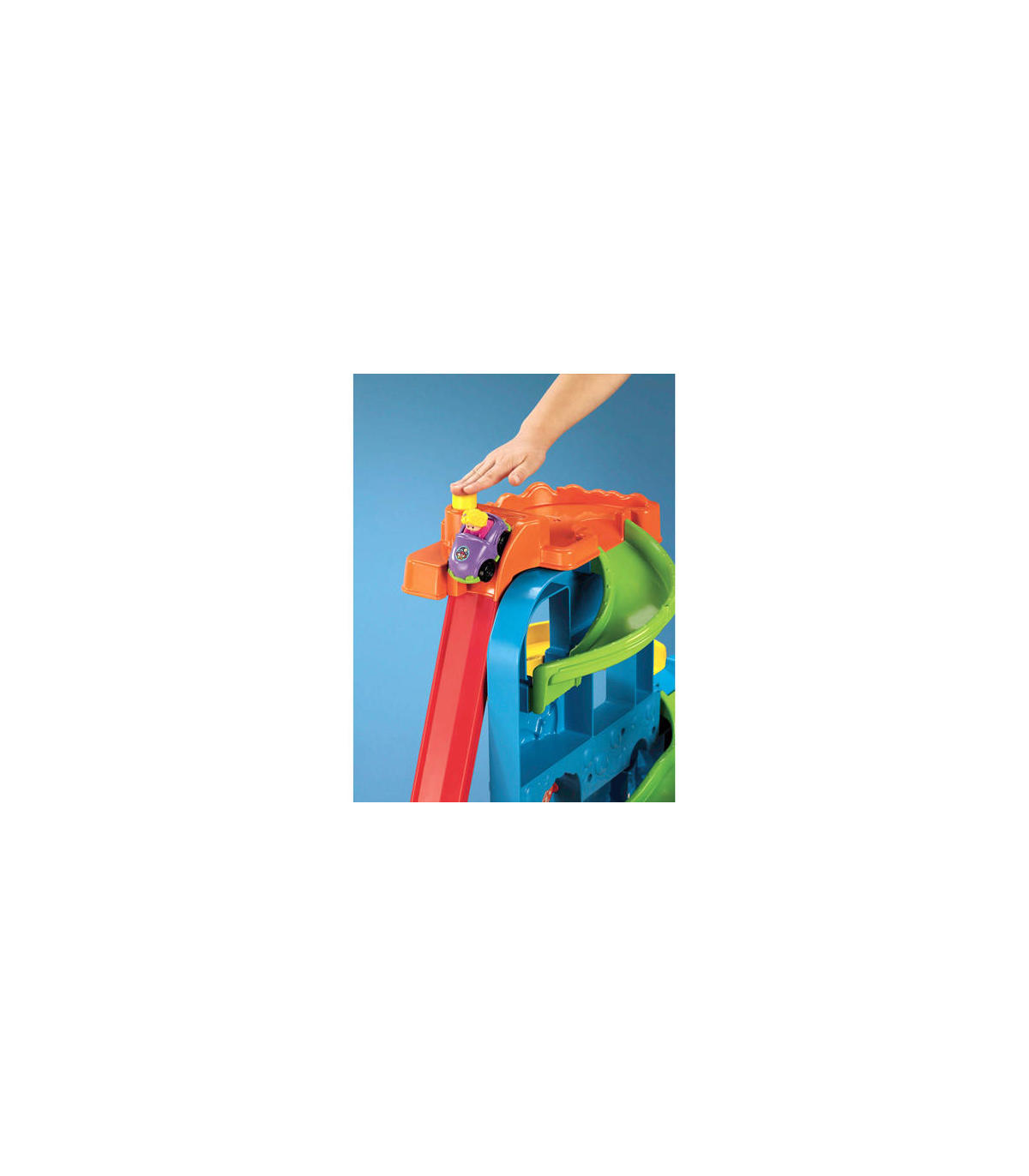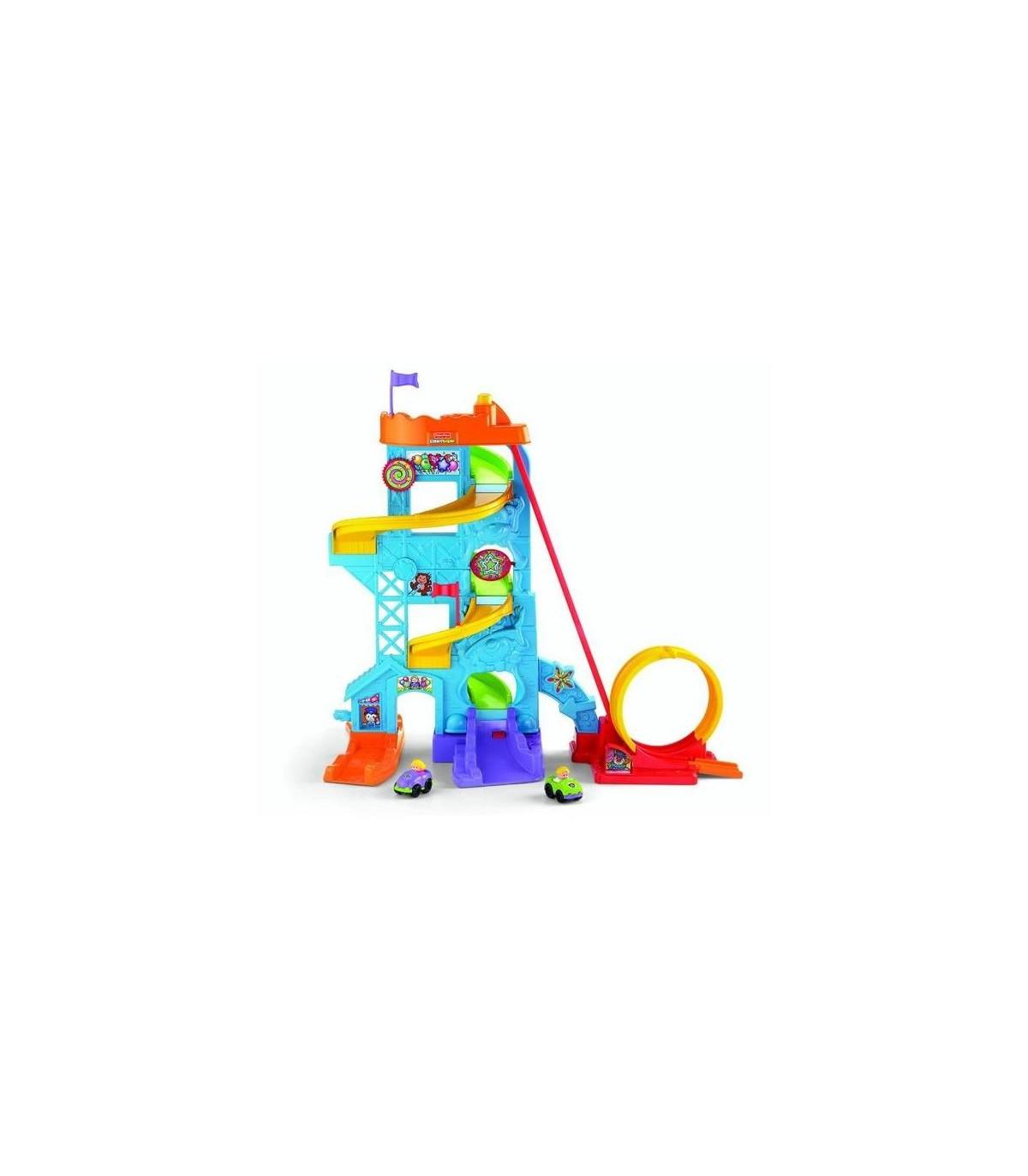 Este conjunto de juego, con el que se puede jugar desde ambos lados, mide más de 60 cm de alto e incluye una rampa llena de giros, ¡y un looping de 360 grados que desafía la gravedad! Al bajar por la rampa, los vehículos activan la pieza giratoria ¡y al llegar al final se activan luces y divertidos sonidos! Al pulsar el botón de la parte superior del parque de atracciones, ¡el vehículo baja a toda la velocidad por la inclinada rampa que acaba en un looping de 360 grados! Para más diversión, ¡se puede levantar la rampa del final del looping y el vehículo realizará un espectacular salto! Incluye varios accesorios: entre ellos 4 banderas que se pueden colocar en distintas partes, así como 2 coches ambientados en un parque de atracciones, con un conocido personaje de Little People.
