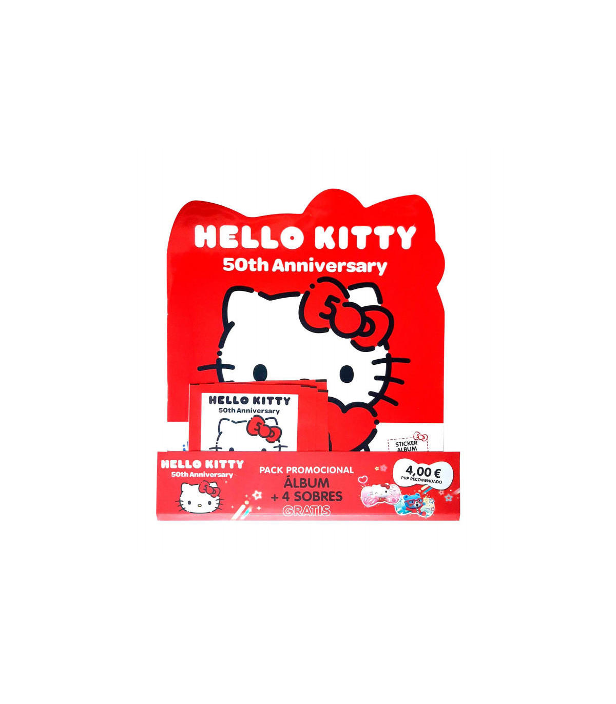La colección de cromos del 50 aniversario de Hello Kitty es una nueva y colorida colección de cromos dividida en dos secciones. La primera cuenta la historia del colorido mundo de Hello Kitty, y cada página del álbum está dedicada a un tema diferente. La segunda parte sigue las aventuras de la nueva serie, en la que Kitty ayuda a sus amigos. Cuando un amigo necesita ayuda, Kitty activa una transformación asombrosa y cambia su disfraz para convertirse en una valiente exploradora, una astuta detective, una chef de primera o una sensacional estrella del pop.