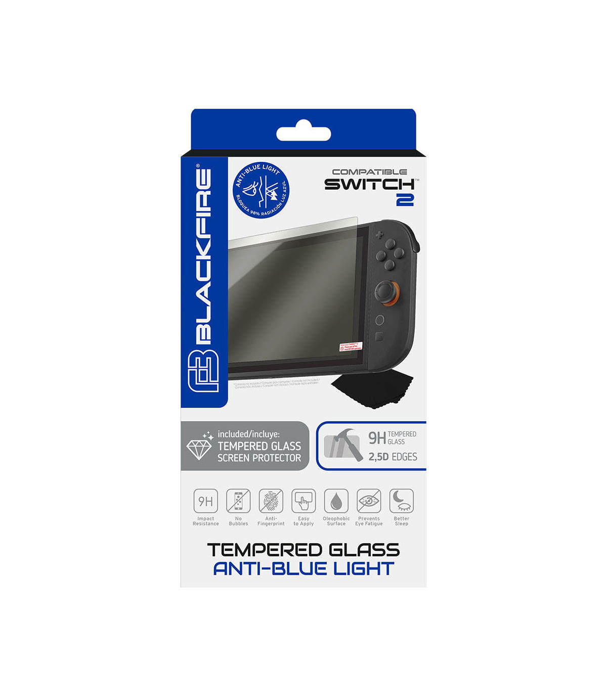 Protege tu vista y tu consola con el Blackfire Tempered Glass Antibluelight 9H para Switch 2. Este protector de pantalla de vidrio templado no solo ofrece una resistencia superior contra rayones y golpes, sino que también reduce la fatiga ocular al filtrar la luz azul, cuidando tu salud visual durante largas sesiones de juego.